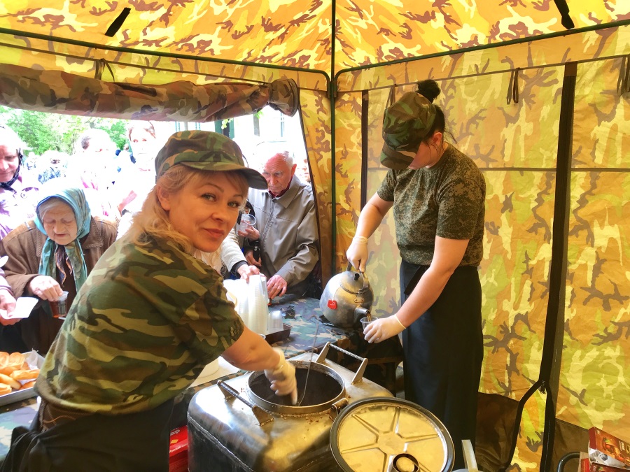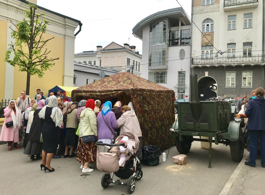 После богослужения в пешеходной зоне у храма работала полевая кухня, подкрепившая силы около ста пятидесяти паломников.