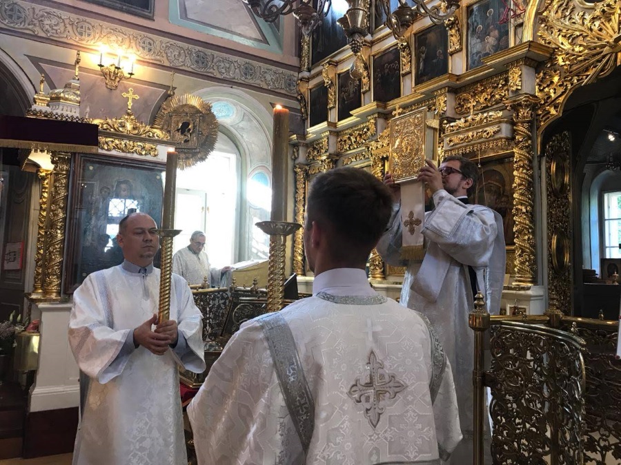 Завершился сорокадневный пасхальный период. Утром в среду, 5 июня, настоятель храма пророка Божия Илии в Обыденском переулке протоиерей Максим Шевцов пасхальным чином совершил литургию отдания Пасхи Христовой, последний раз в этом году возгласив жизнеутверждающее «Христос воскресе!», а уже вечером состоялось соборное всенощное бдение в честь славного Вознесения Господня, на котором верующие молитвенно вспоминали восшествие Спасителя во плоти на Небеса.