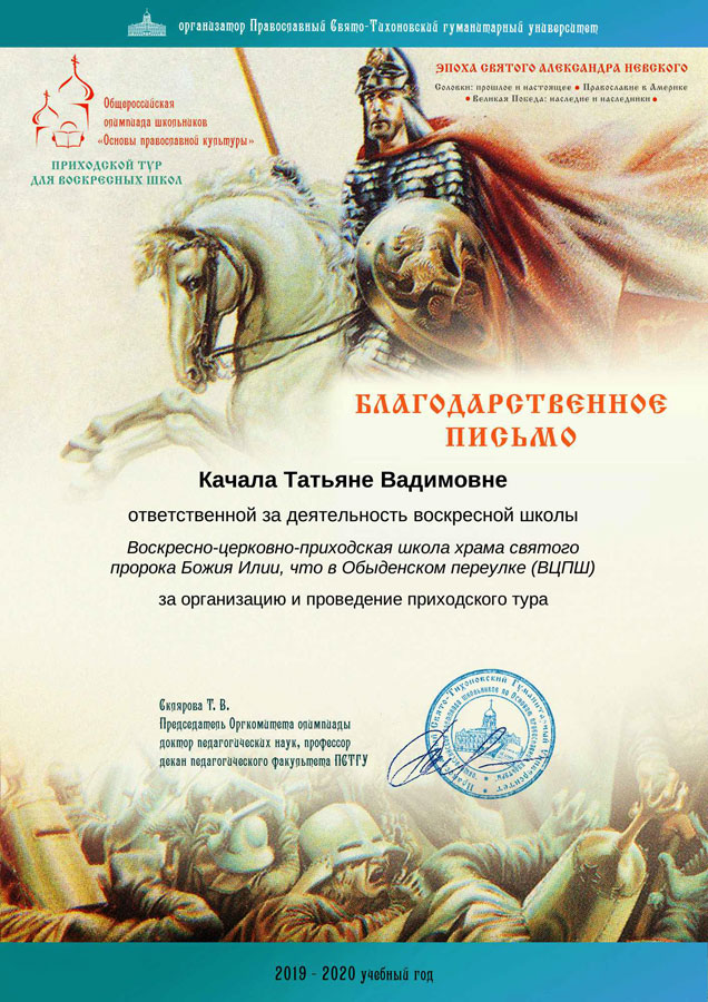 Олимпиада на приходе была организована и проведена ответственной за деятельность школы Т. В. Качалой.