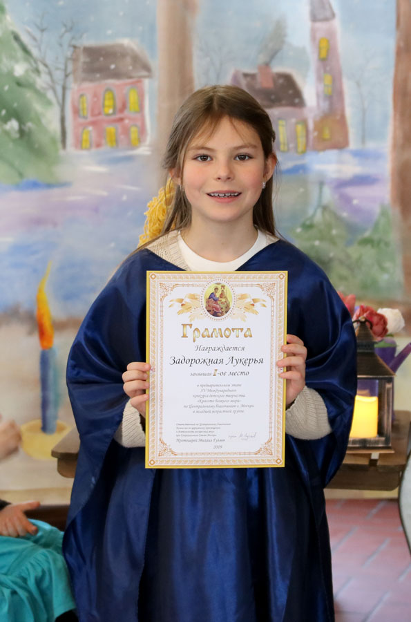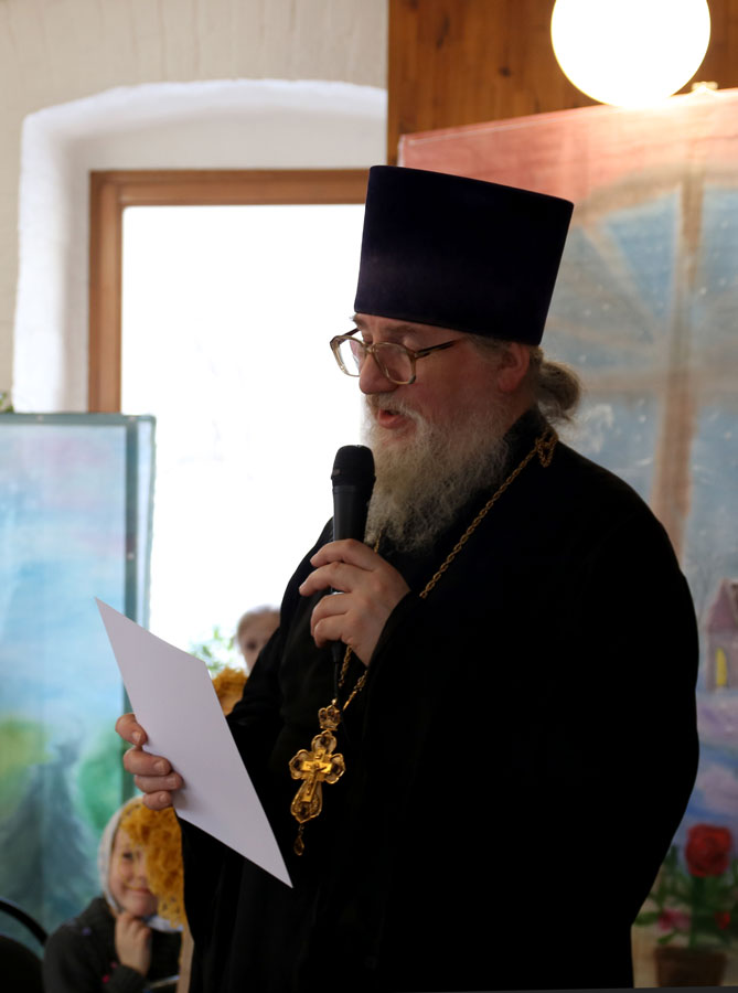Собравшиеся спели тропарь праздника Рождества Христова. Затем с приветственным словом к детям и родителям обратился духовник воскресной школы протоиерей Николай Скурат, который вручил грамоты присутствовавшим на празднике победителям конкурса «Красота Божьего мира» в Центральном благочинии.