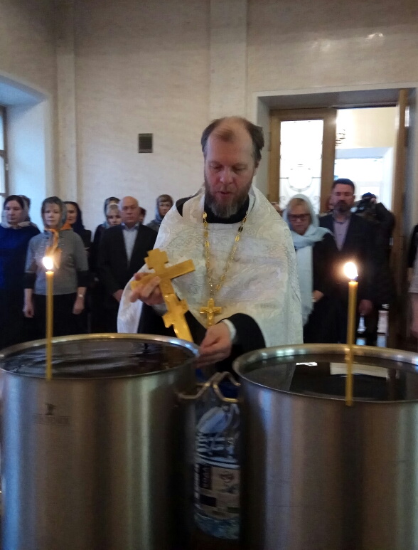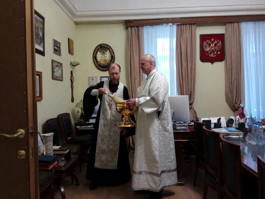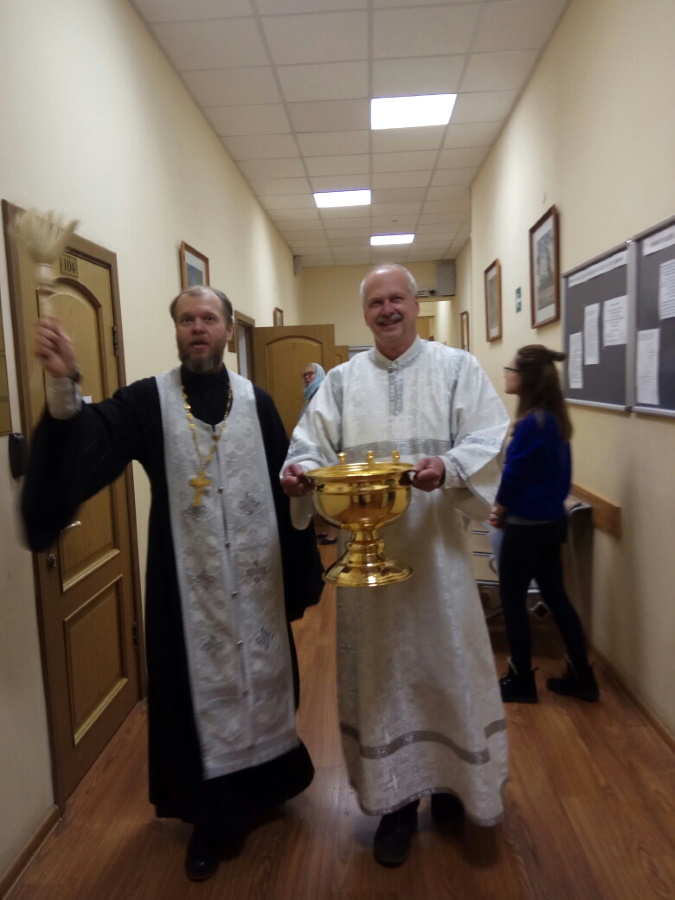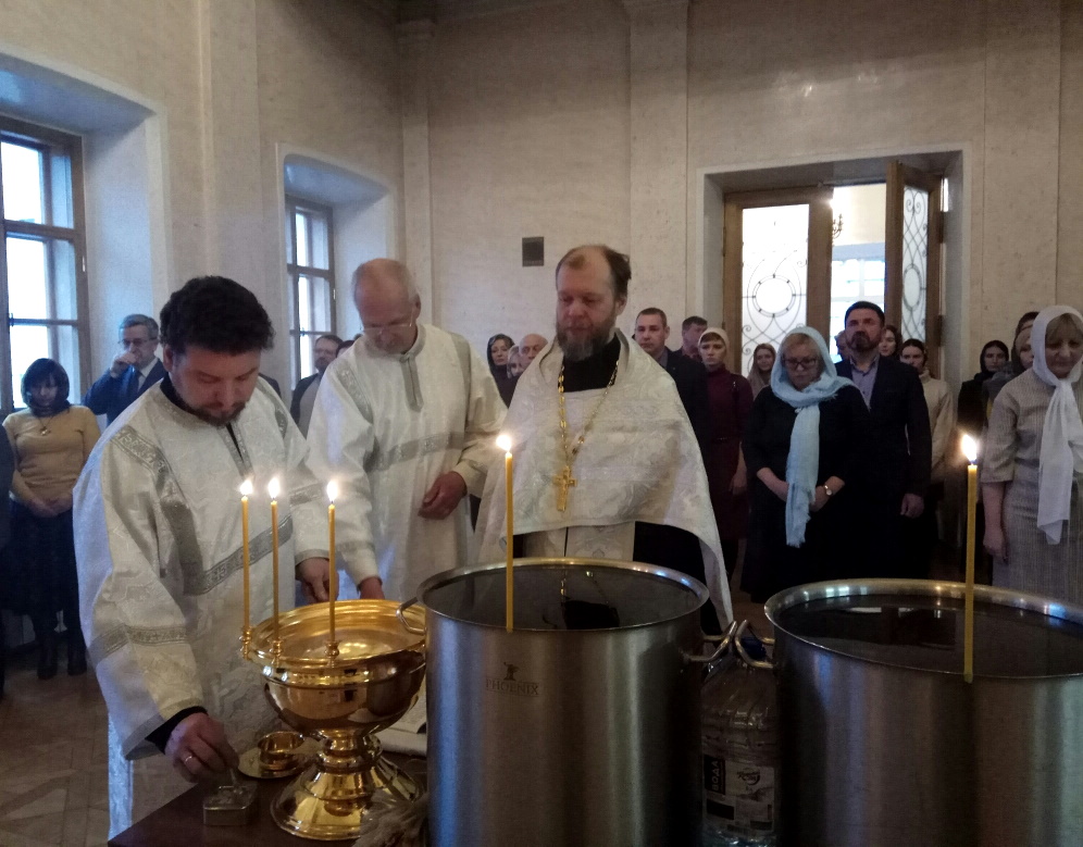 20 января, в попразднство Крещения Господня, по благословению настоятеля нашего храма протоиерея Максима Шевцова иерей Андрей Дорохин совершил великое освящение воды в домовом храме в честь святой равноапостольной Марии Магдалины при Московском государственном лингвистическом университете.