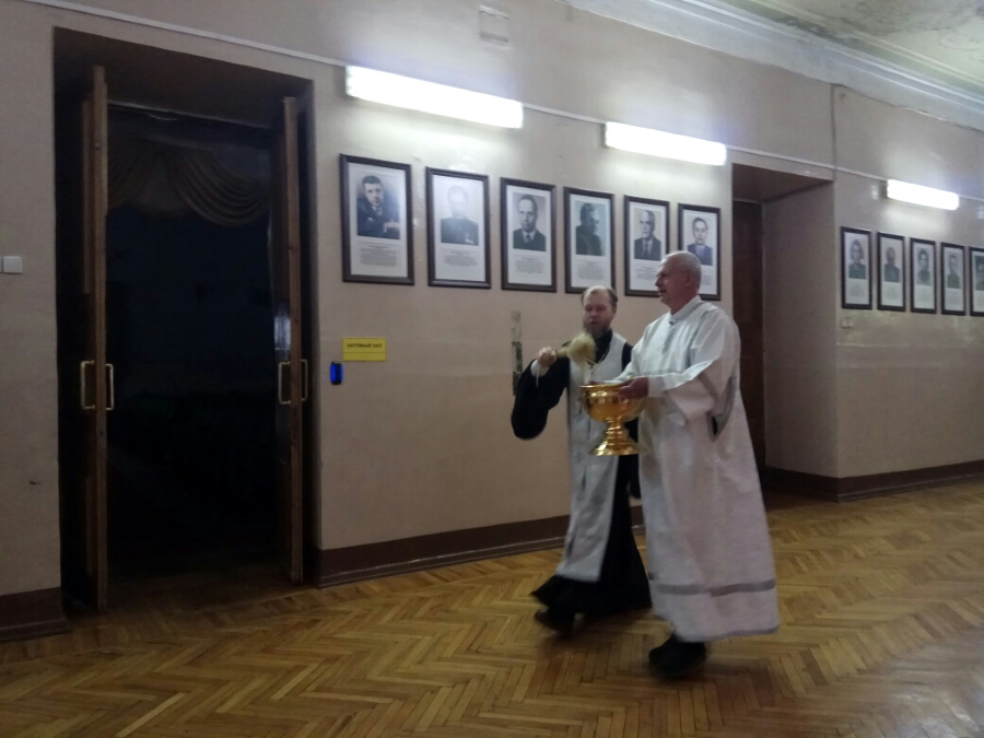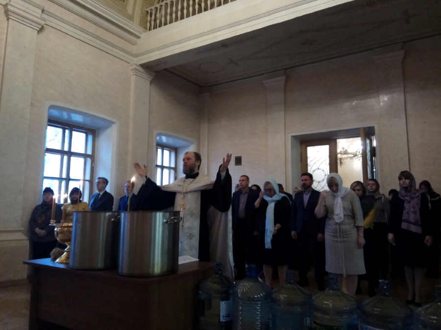 Клирик храма пророка Божия Илии в Обыденском переулке совершил чин великого освящения воды в МГЛУ.