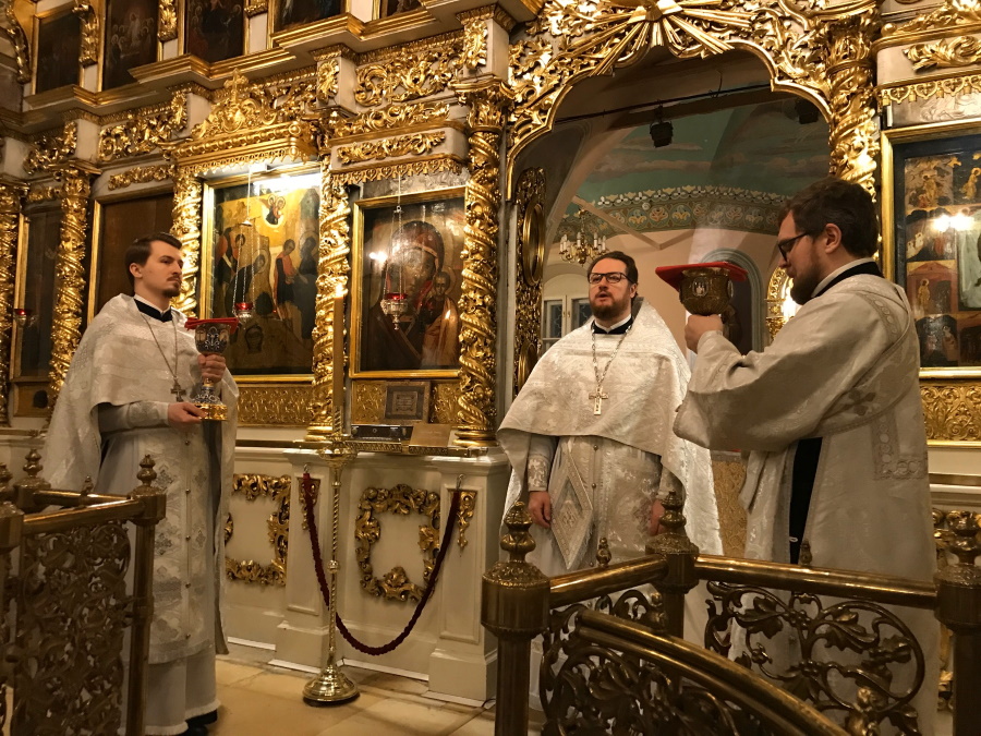 Вечером прошло торжественное всенощное бдение, состоявшее из великого повечерия с литией и утрени. В день праздника Крещения Господня были совершены две Божественные литургии свт. Василия Великого. Раннюю возглавил настоятель храма протоиерей Максим Шевцов, позднюю — протоиерей Николай Скурат. Обе литургии завершились чином великого освящения воды.