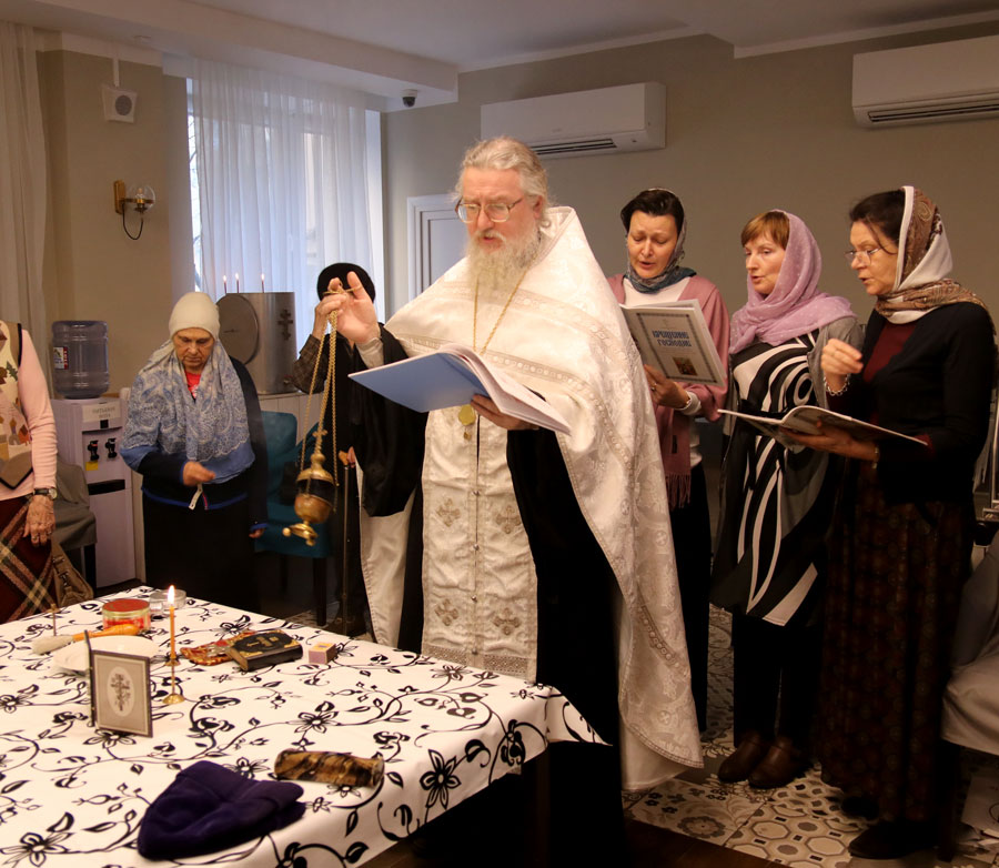 В навечерие Крещения Господня после Божественной литургии в Илие-Обыденском храме протоиерей Николай Скурат посетил территориальный центр социального обслуживания «Проспект Вернадского» для освящения там воды по просьбе инвалидов и малоподвижных пенсионеров. Перед началом общей молитвы протоиерей Николай, окормляющий этот центр, провел краткую беседу-напоминание о празднике Крещения Господня, о значении водоосвящения, по окончании которой для немощных пожилых людей и инвалидов было совершено богослужение с великим освящением воды. В богослужении также приняли участие 4 певчих из волонтерского приходского хора воскресной школы для взрослых.