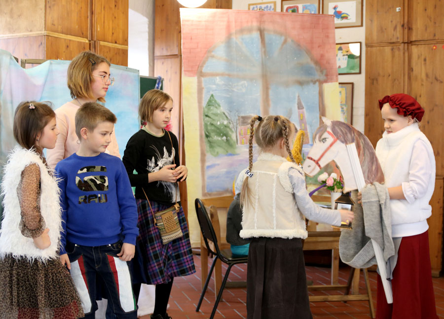 Затем началась музыкально-вокальная часть праздника. Дети играли на различных музыкальных инструментах, пели песни и читали стихи. Для тех, кто не смог прийти на приходскую рождественскую елку, учащиеся воскресной школы показали спектакль по сказке Ганса Христиана Андерсена «Снежная Королева» (режиссер-постановщик – педагог Т.Н. Семенова).