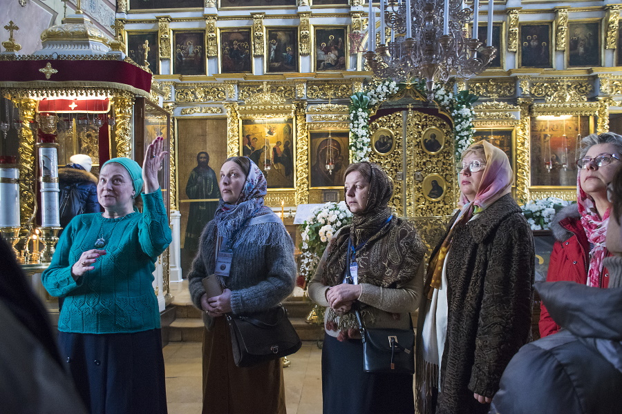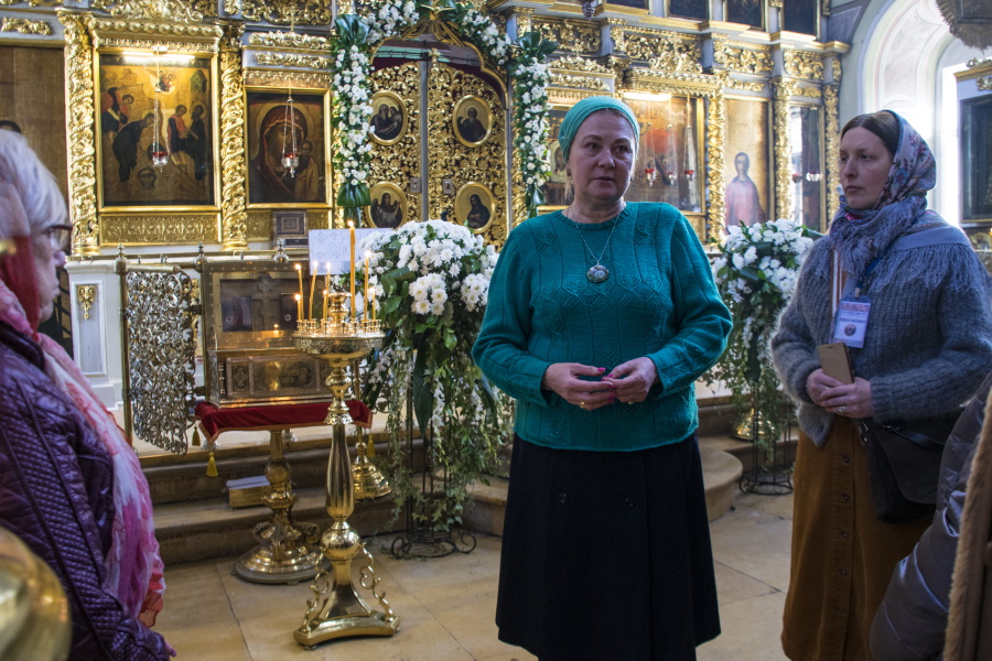 Для большинства из приехавших это было первым знакомством с храмом пророка Илии. Поэтому наш гид Ольга Владимировна Селезнева провела экскурсию, рассказав гостьям об истории Обыденской церкви и ее многочисленных святынях. Вдохновенное повествование вылилось в насыщенную беседу — женщины, оказавшиеся очень внимательными и благодарными слушательницами, задали Ольге Владимировне много уточняющих вопросов.