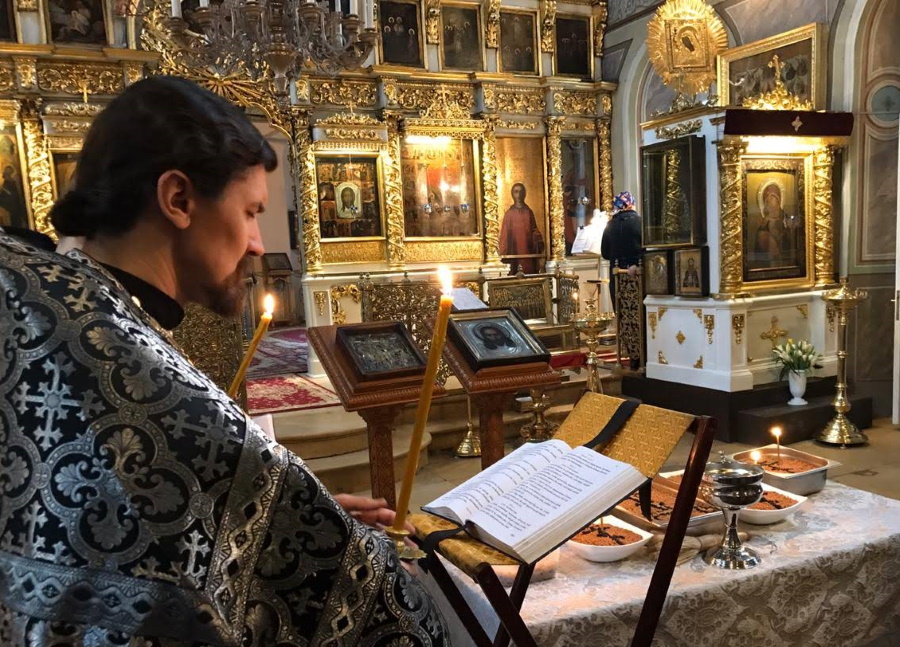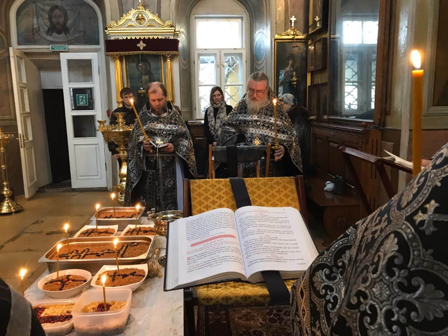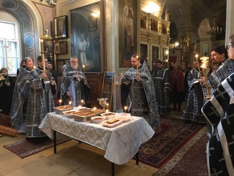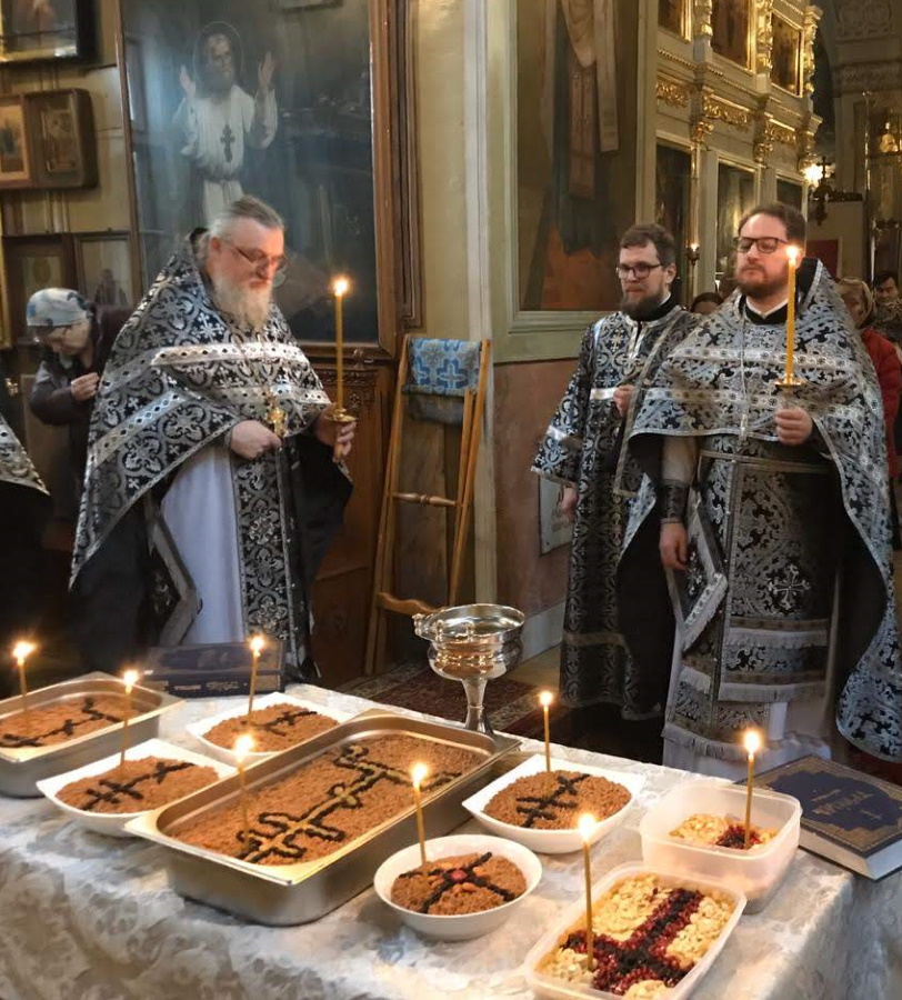6 марта, в пятницу, в нашем храме была совершена литургия Преждеосвященных Даров и молебен с освящением колива.