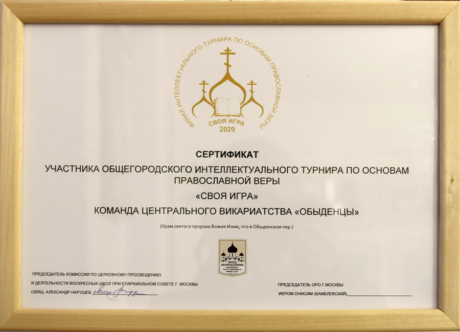 Интеллектуальное состязание состоялось в здании воскресной школы храма Архангела Михаила в Тропареве 15 марта 2020 года. За призовые места боролись 11 команд из московских викариатств. Центральное викариатство представляли две команды — «Ильинцы» и наша команда «Обыденцы». Это уже четвертый городской турнир, организованный Комиссией по церковному просвещению и деятельности воскресных школ при Епархиальном совете г. Москвы, в котором принимает участие наша команда. «Обыденцев» представляли учащиеся группы преподавателя Т. В. Качалы, для которых были организованы специальные занятия по подготовке к турниру.