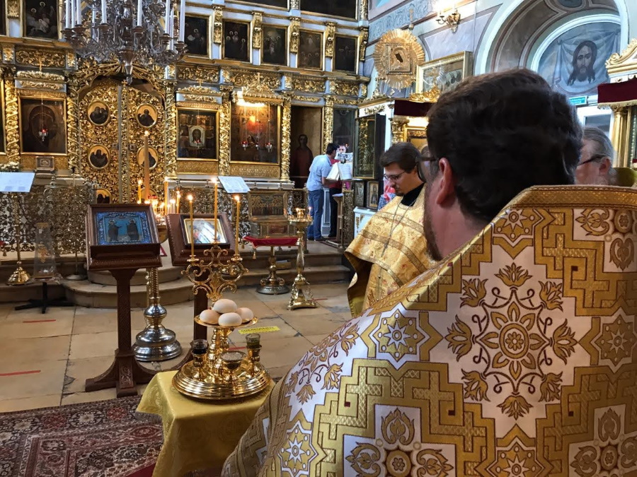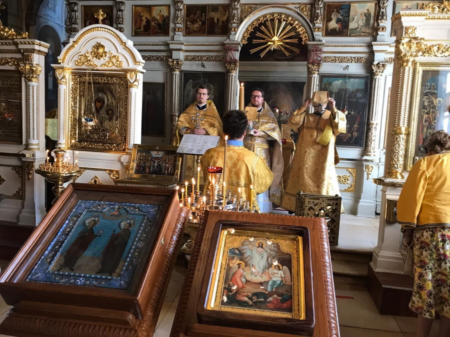 Накануне вечером было отслужено торжественное всенощное бдение, на котором духовенство и прихожане с особым чувством величали святых покровителей нашего храма: Петра — «Камня веры» — и Павла — «Апостола языков», «весь мир ученьми своими просветивших и вся концы ко Христу приведших».