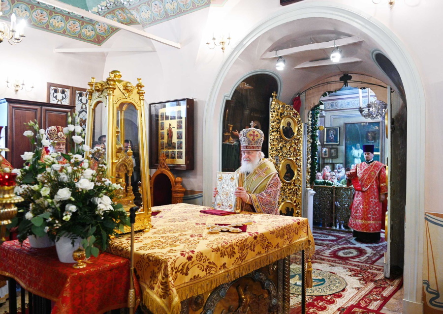 В день памяти пророка Божия Илии Святейший Патриарх Кирилл совершил Божественную литургию в храме Илии Пророка в Обыденском переулке в Москве.