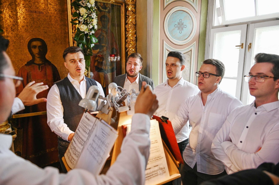 Богослужебные песнопения исполнил мужской хор храма пророка Божия Илии в Обыденском переулке (регент — Г. В. Болотов).