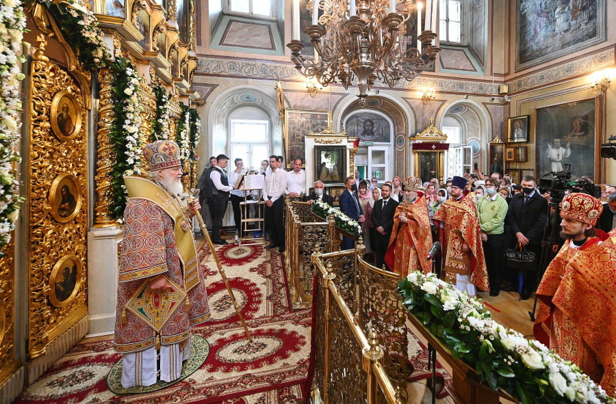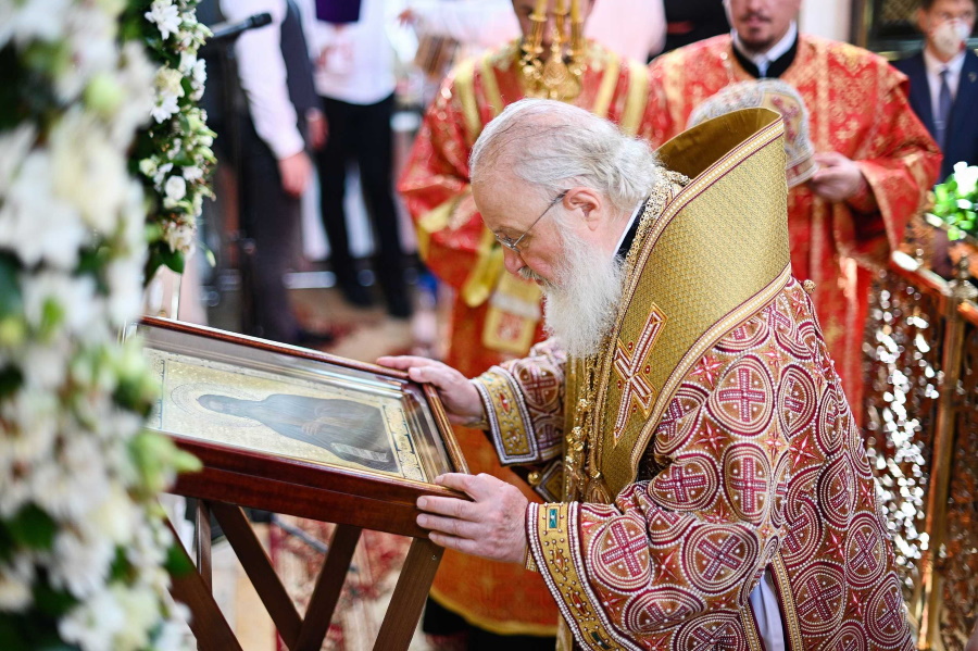 По окончании литургии состоялось славление пророка Илии. Затем Святейший Патриарх Кирилл прочитал молитву святому.