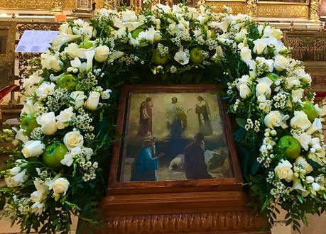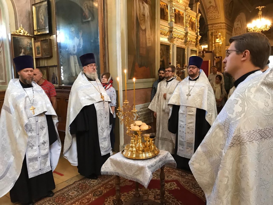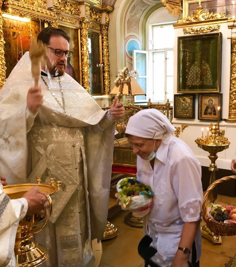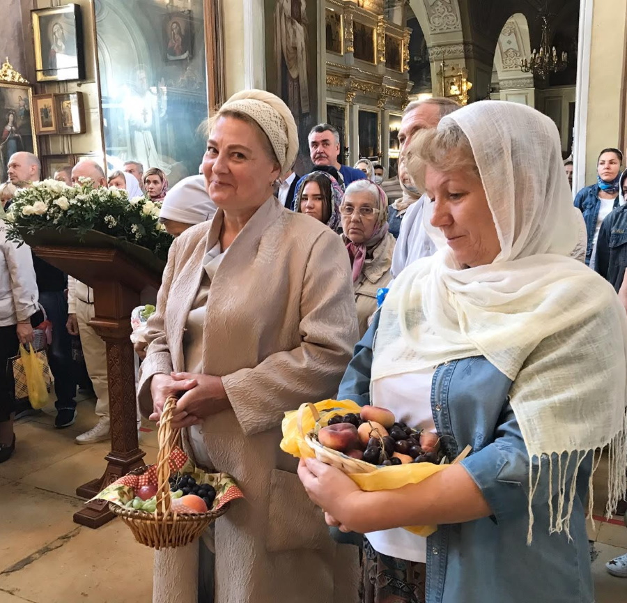 Запах ладана смешивался со свежим ароматом принесенных прихожанами яблок, винограда и других фруктов. После литургий совершался чин освящения плодов, давший празднику Преображения второе, народное, название Яблочный Спас.