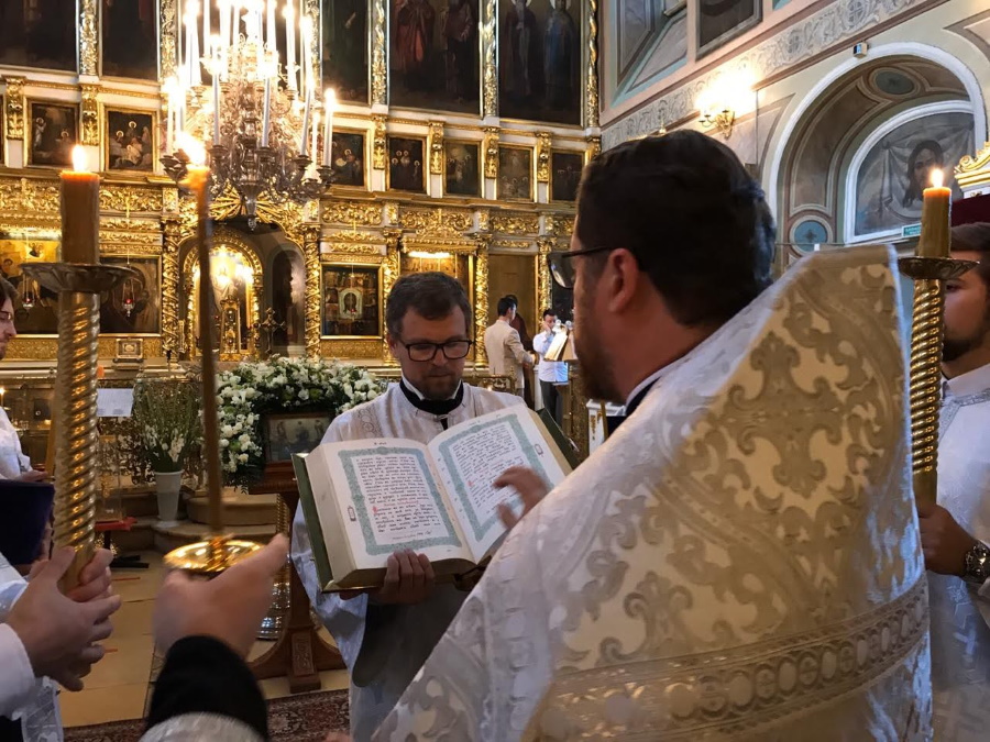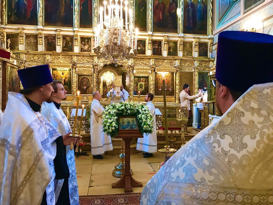 18 августа, в канун праздника, было совершено всенощное бдение. Белоснежные облачения духовенства, праздничное убранство храма, яркий свет паникадил, беленькие платочки на головах прихожанок — все напоминало о сиянии преобразившегося на горе Фавор Господа нашего Иисуса Христа.