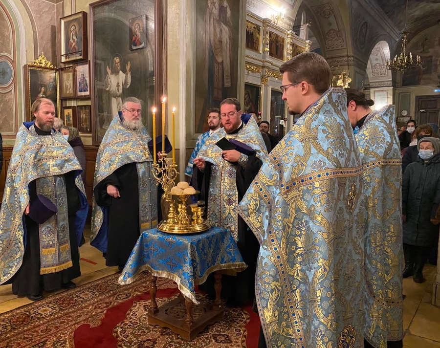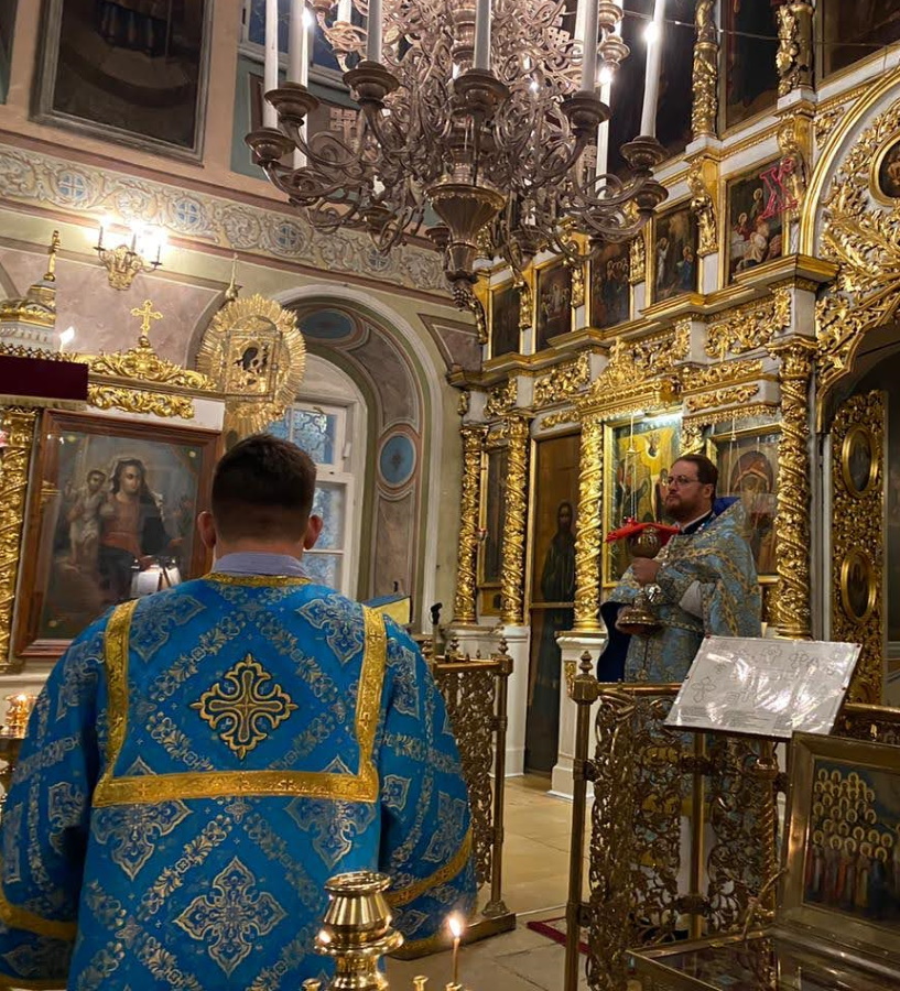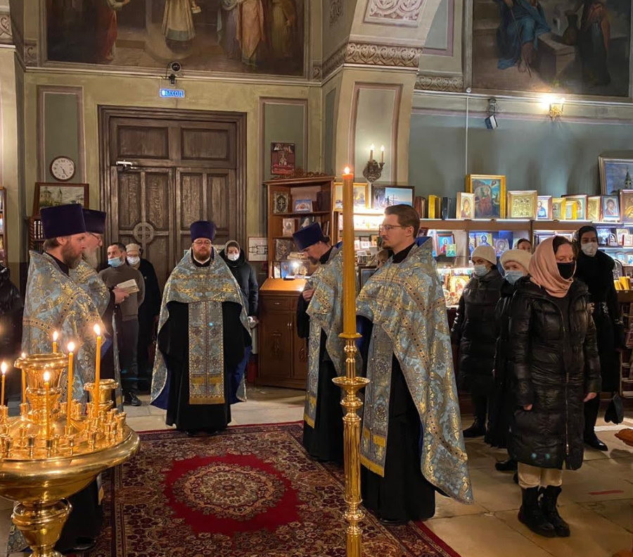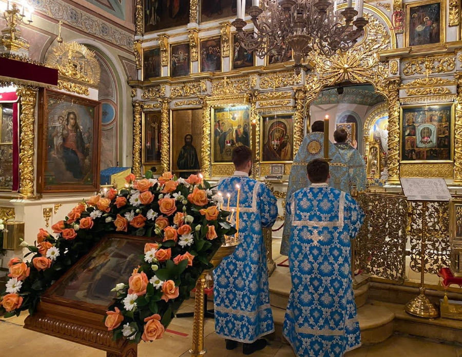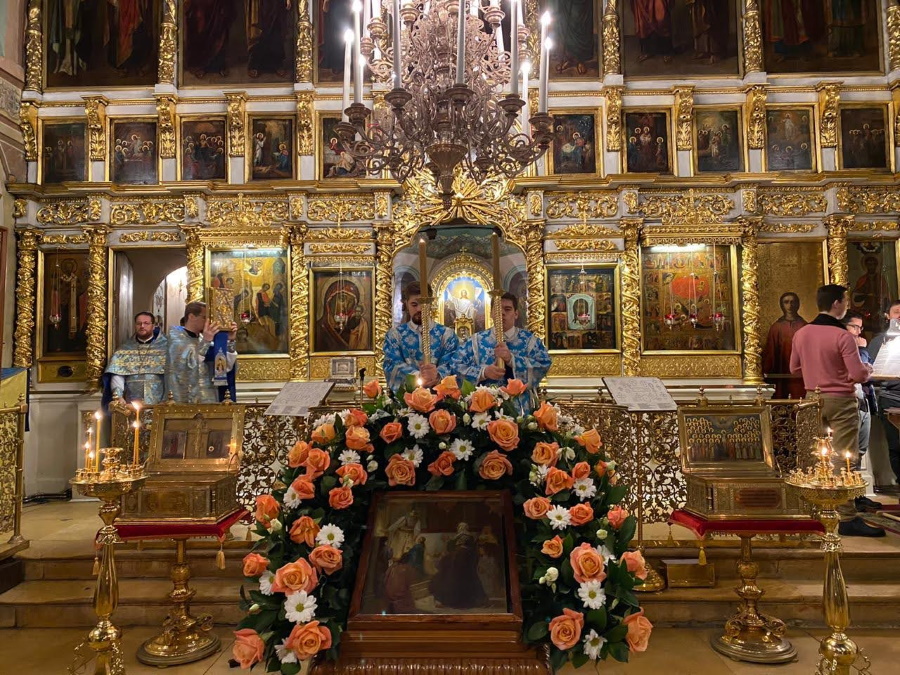 Вечером накануне праздника духовенство храма соборно отслужило торжественное всенощное бдение. Праздничное богослужение, на котором верующие величали Честнейшую Херувим и Ее вхождение в Иерусалимский храм, явилось также предвозвещением близкого Рождества Христова — в этот день впервые прозвучали радостные ирмосы «Христос раждается, славите!».