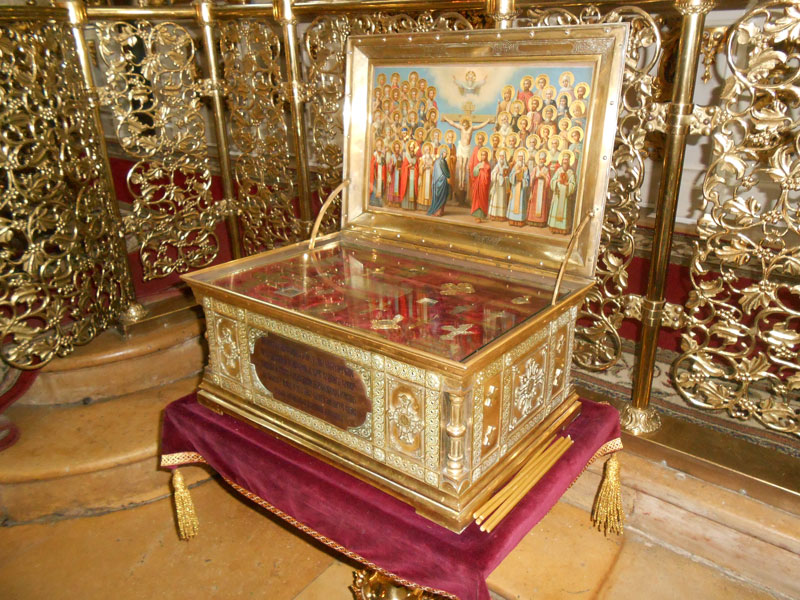 В правом мощевике у главного алтаря нашего храма хранится частица его святых мощей.