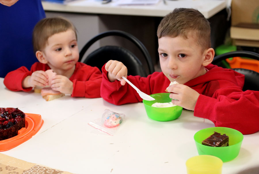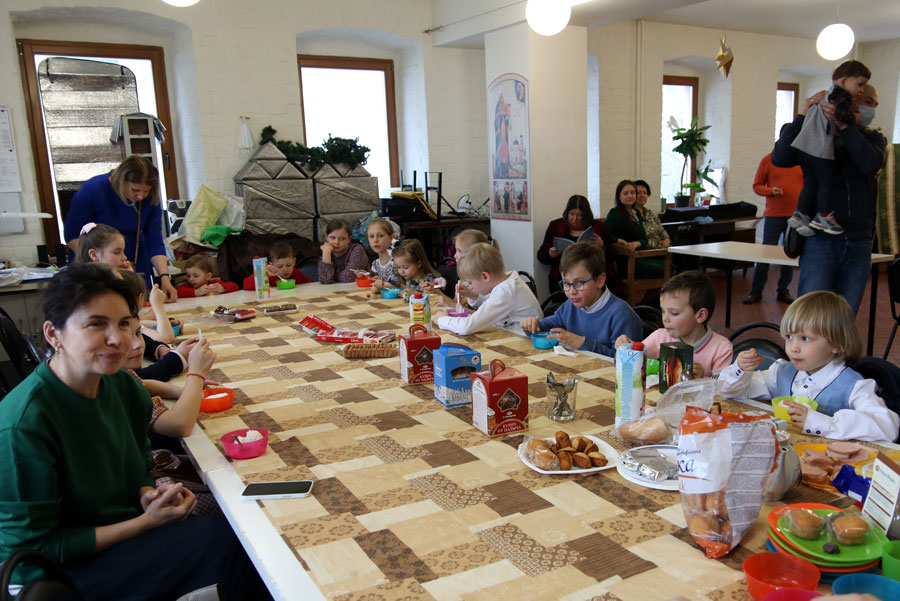Затем было организовано угощение с традиционным мороженым и сладостями. Дети и взрослые получили разнообразные подарки – православные книги и журналы, сладости, игрушки и др.