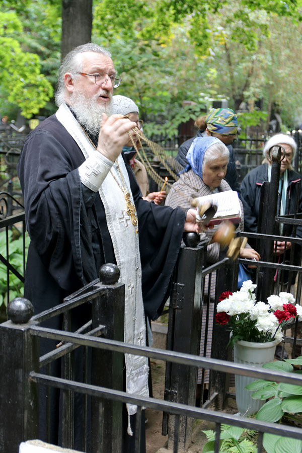 На могиле батюшки на Немецком (Введенском) кладбище, по традиции, духовником воскресной школы нашего прихода протоиереем Николаем Скуратом была отслужена панихида с общим пением собравшихся. Придя на кладбище, наши прихожане встретили уходивших с могилы отца Александра монахинь Зачатьевского монастыря.