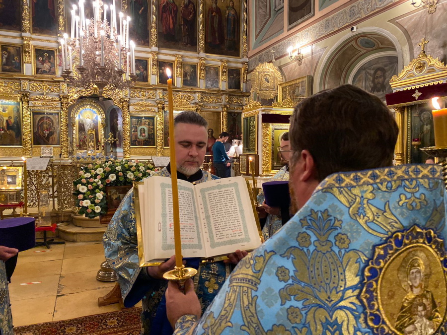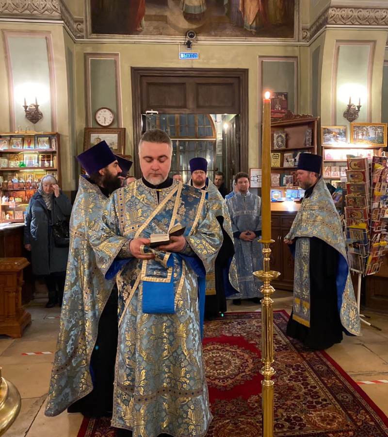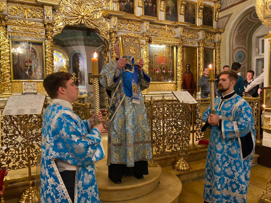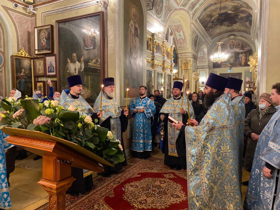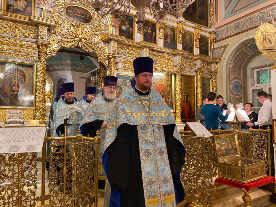 Вечером накануне праздника духовенство храма соборно отслужило торжественное всенощное бдение. Праздничное богослужение, на котором верующие величали Честнейшую Херувим и Ее вхождение в Иерусалимский храм, явилось также предвозвещением близкого Рождества Христова — в этот день впервые прозвучали радостные ирмосы «Христос раждается, славите!».