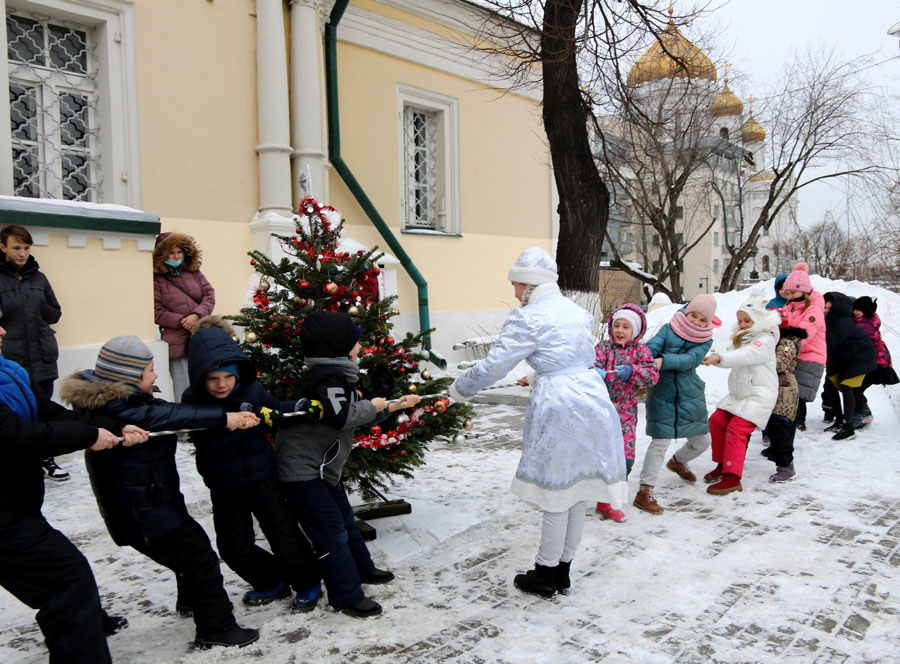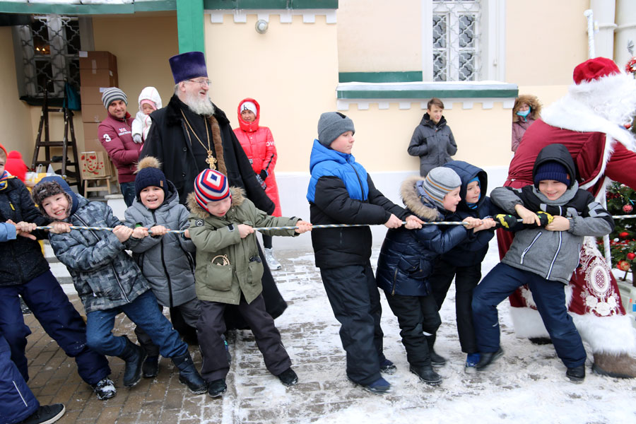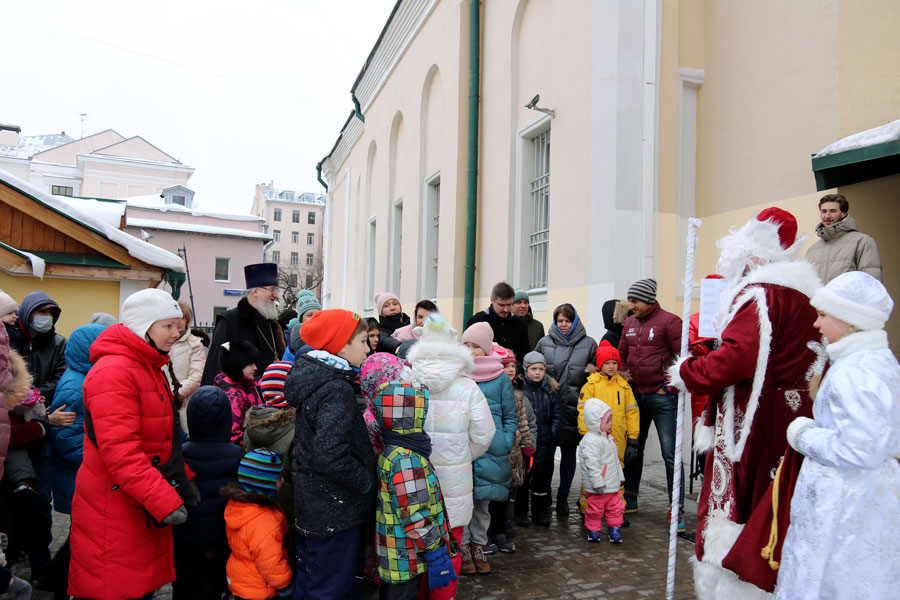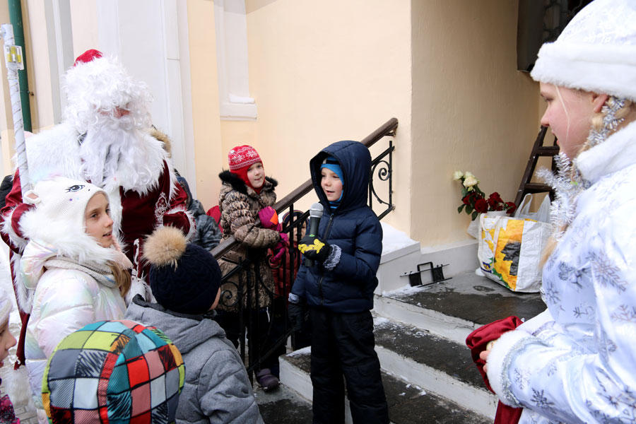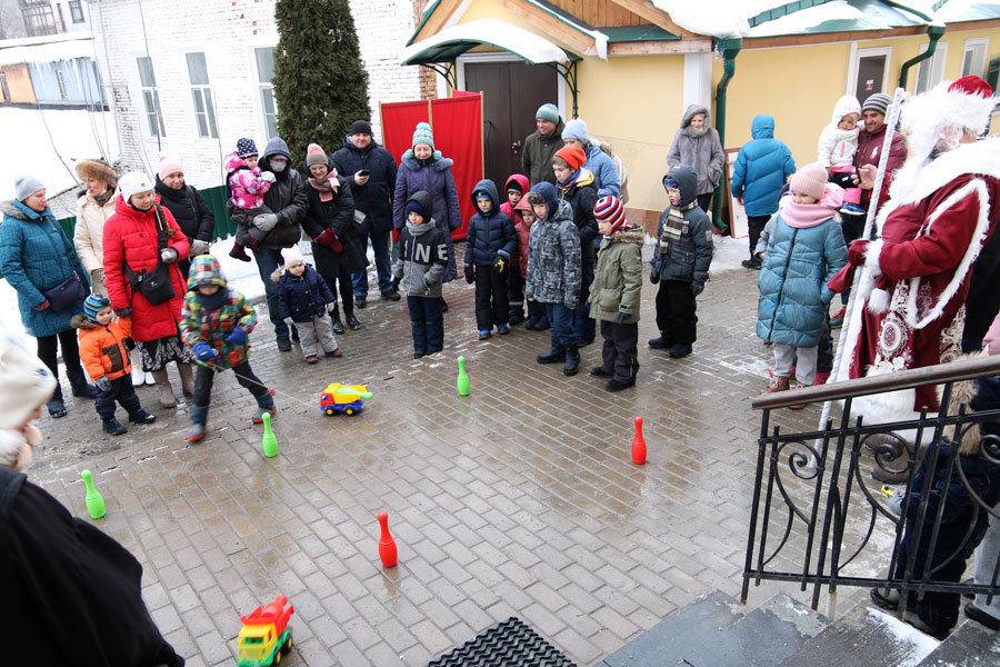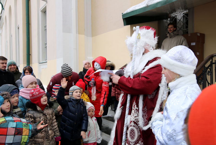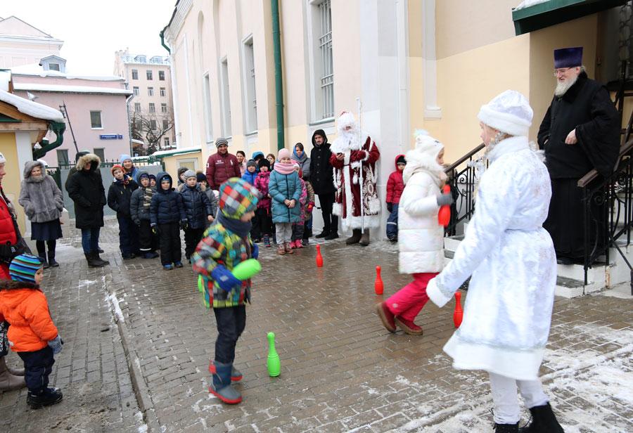 На праздник к детям пришел Дед Мороз, который загадывал детям рождественские загадки. Дед Мороз со Снегурочкой провели для ребят веселую эстафету и организовали другие подвижные игры.