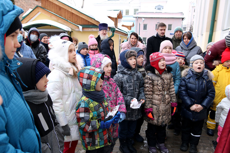 После поздней Божественной литургии в приходском дворике собрались маленькие прихожане нашего храма и их спутники.