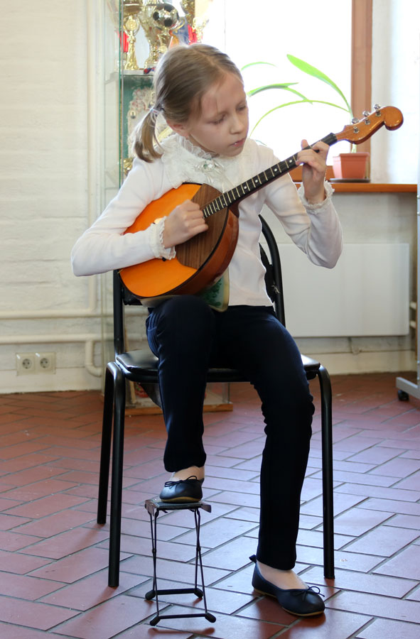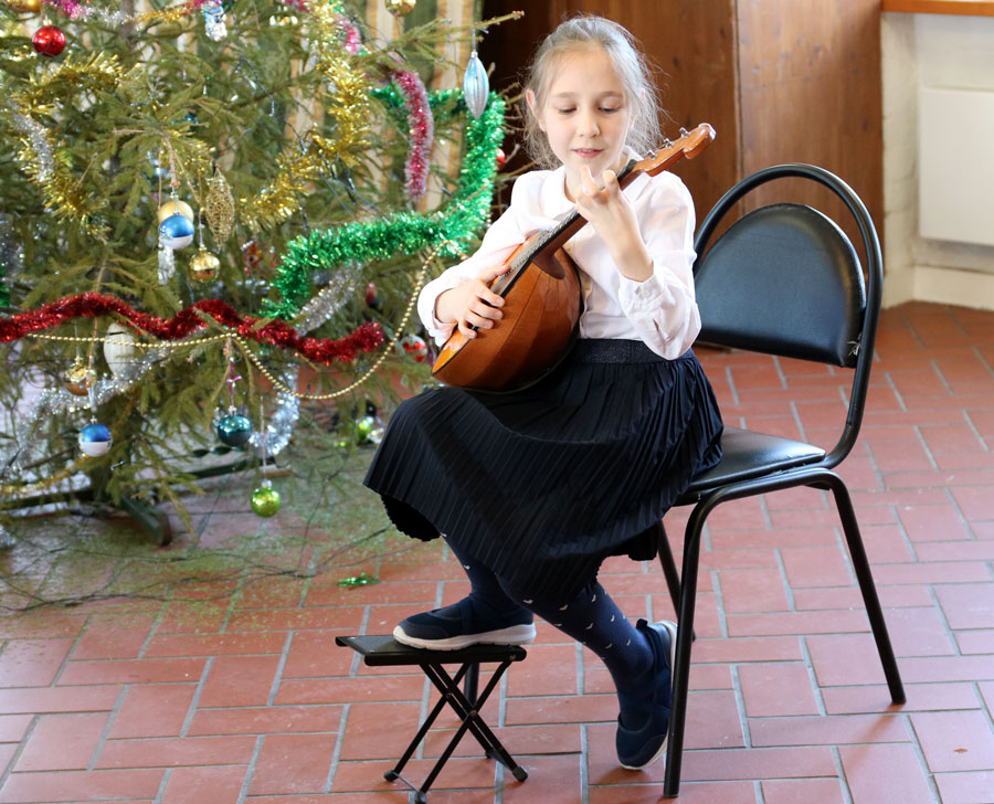Затем началась музыкально-вокальная часть праздника. Дети играли на различных музыкальных инструментах, пели песни и читали стихи. Детский хор воскресной школы под управлением А. В. Акшаевой исполнил колядку «В ночном саду» и ирмос «Христос раждается». Аккомпанировал на пианино И. Г. Черемухин.