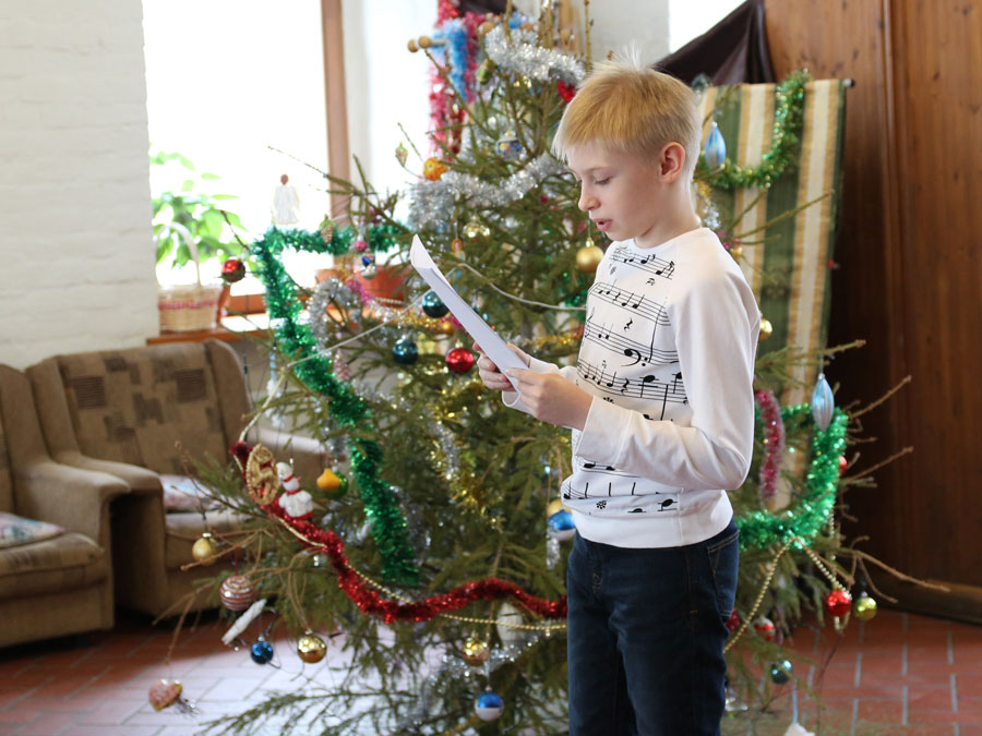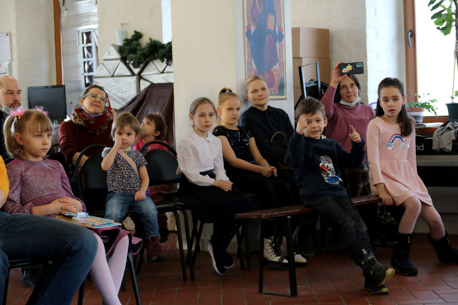 Учащийся старшей группы воскресной школы Никодим Черемухин задал собравшимся рождественские загадки.