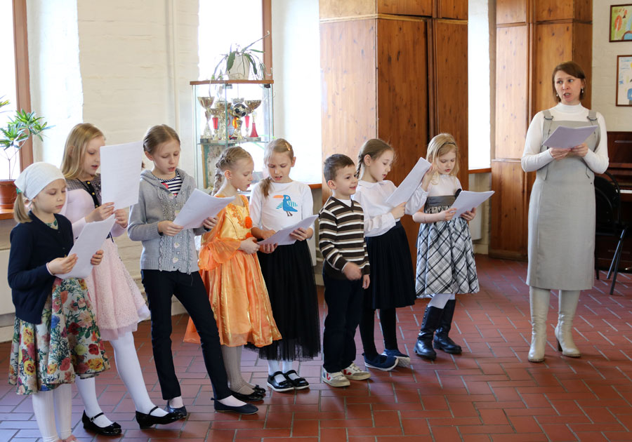 Музыкальный праздник состоялся в воскресенье после поздней Божественной литургии. На водосвятном молебне учащиеся воскресной школы спели избранные песнопения. Затем все собрались в зале воскресной школы.