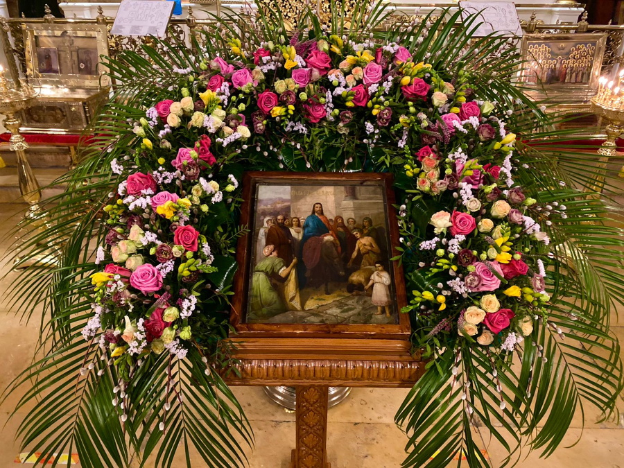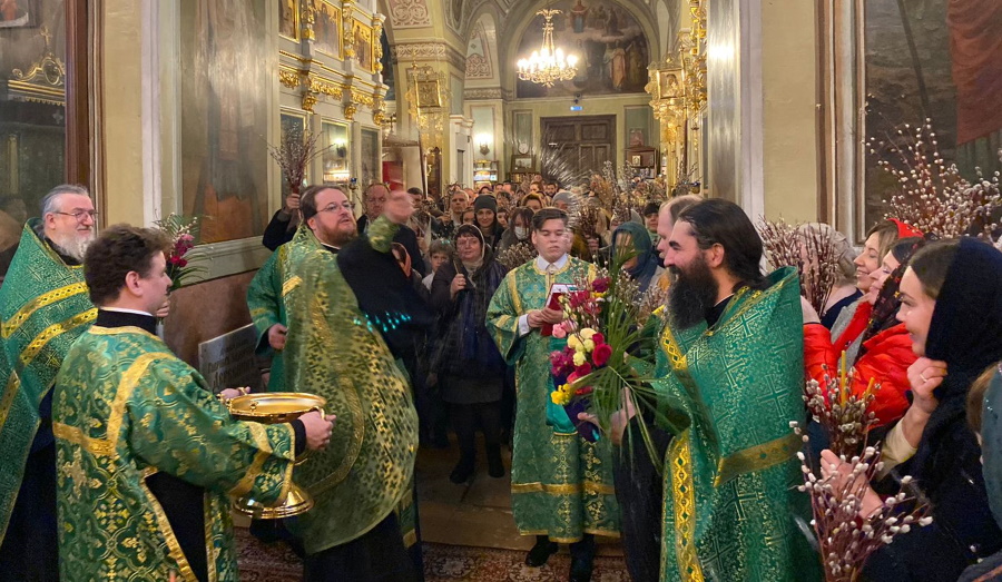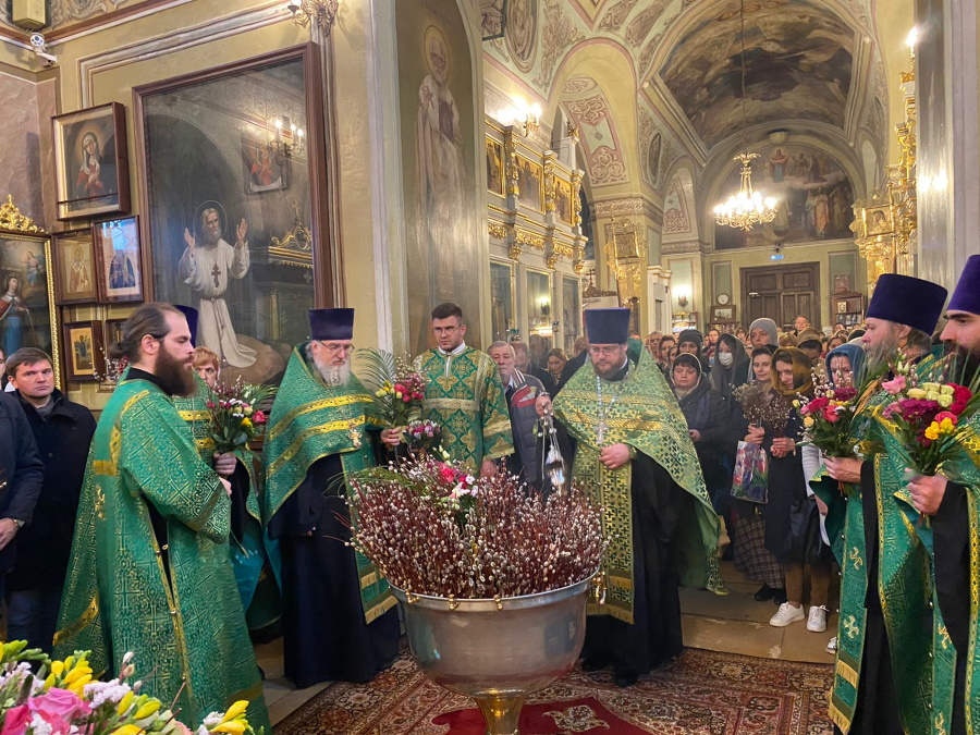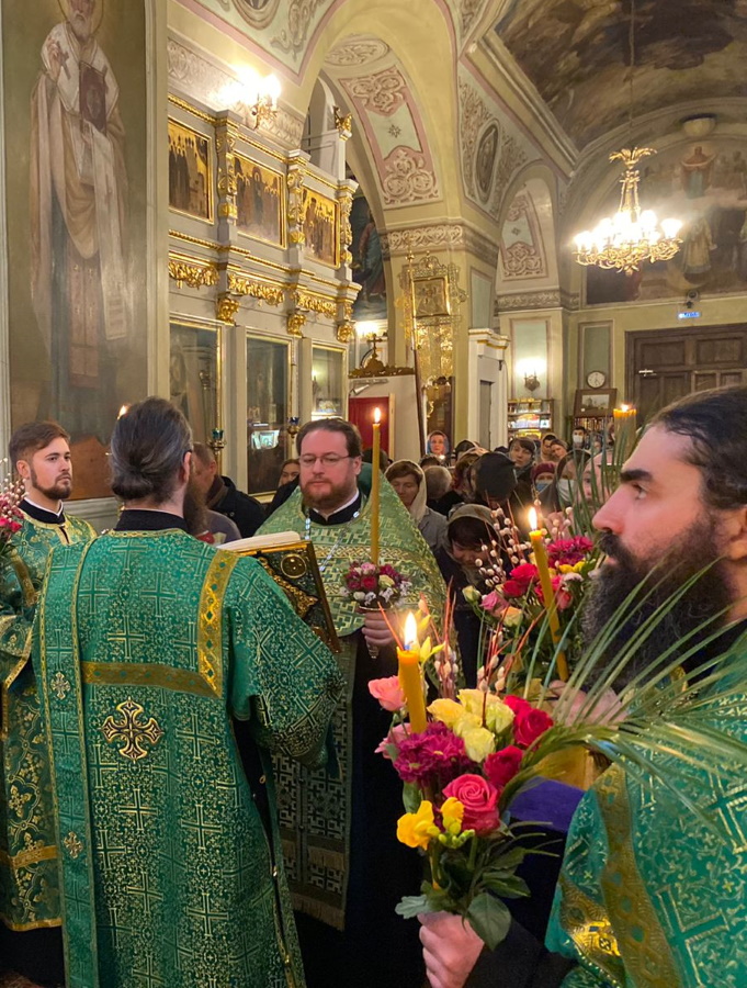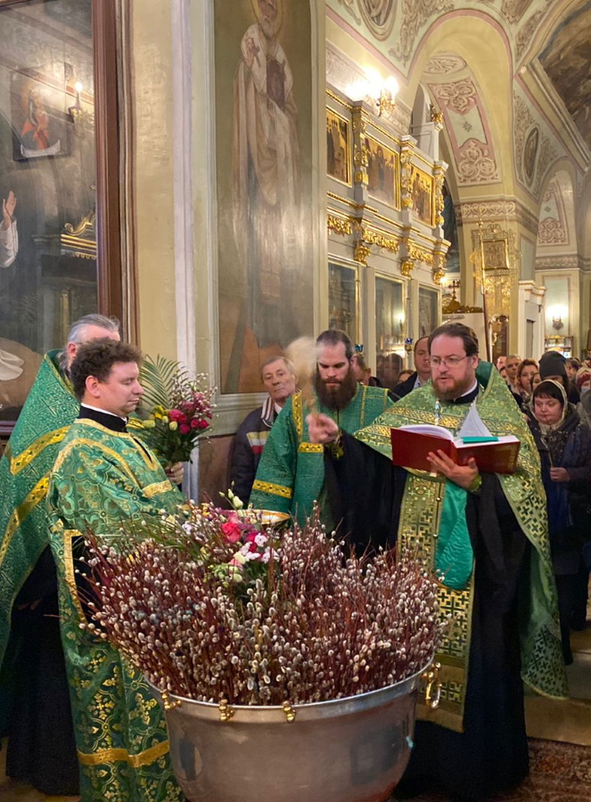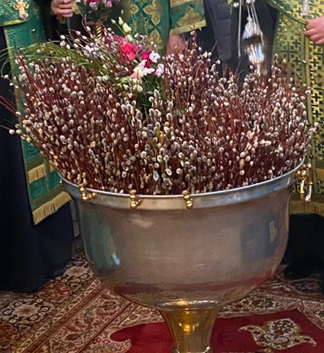 В воспоминание Входа Господня в Иерусалим, когда народ встречал Его пальмовыми ветвями (ваиями), молящиеяся пришли в храм с веточками вербы и цветами. После прочтения Святого Евангелия, повествующего о празднуемых событиях, было совершено освящение ваий.