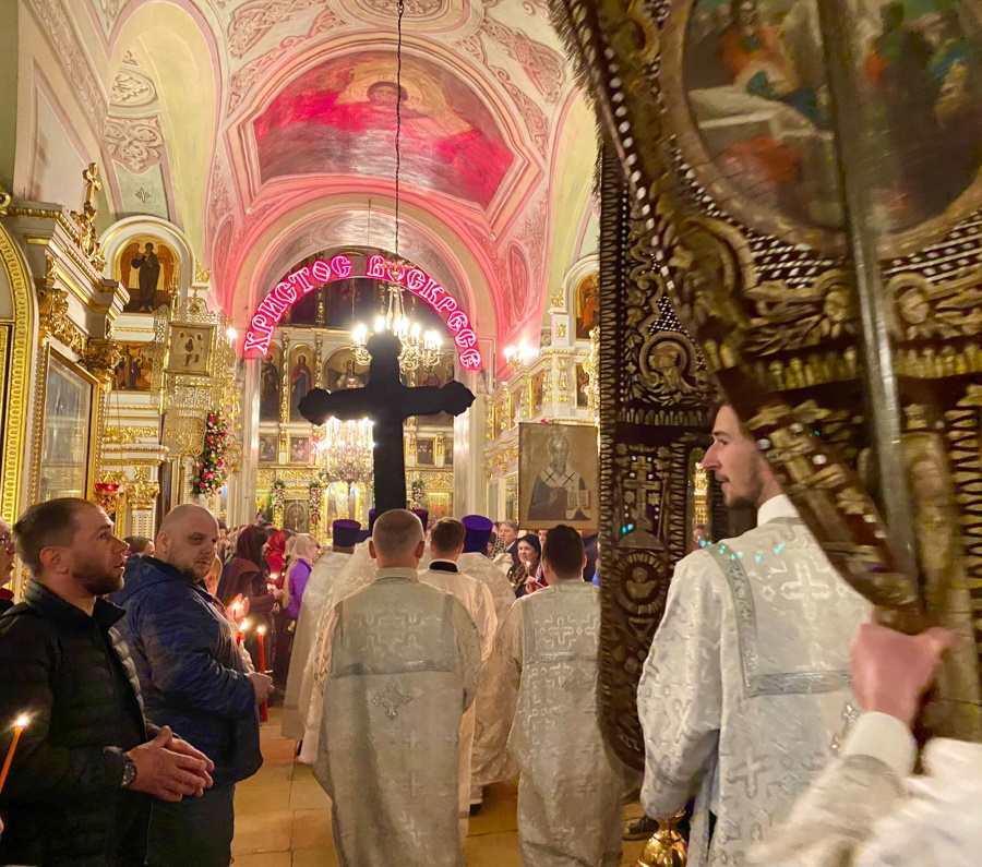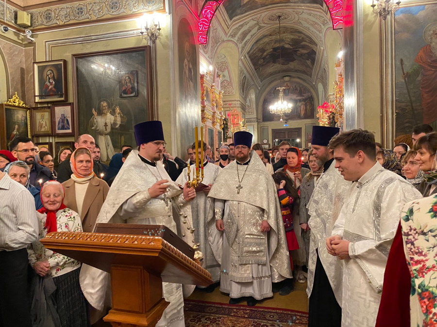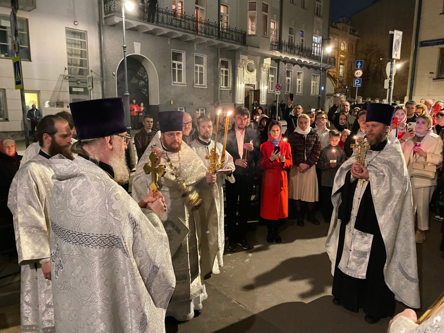 После полунощницы Святая Плащаница, перед которой вечером читались Деяния святых апостолов, была унесена священством в алтарь. Через несколько минут из-за закрытых Царских врат послышалось сначала негромкое, а затем все набирающее силу пение тропаря «Воскресение Твое, Христе Спасе». Мощно и жизнеутверждающе звучал он во время многолюдного крестного хода, совершенного с хоругвями, иконами и красными свечами и фонариками вокруг храма.