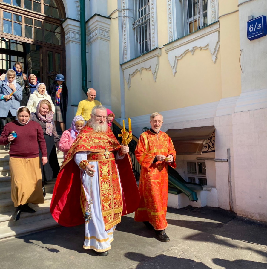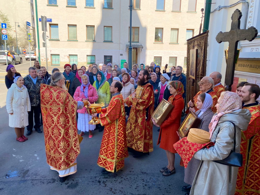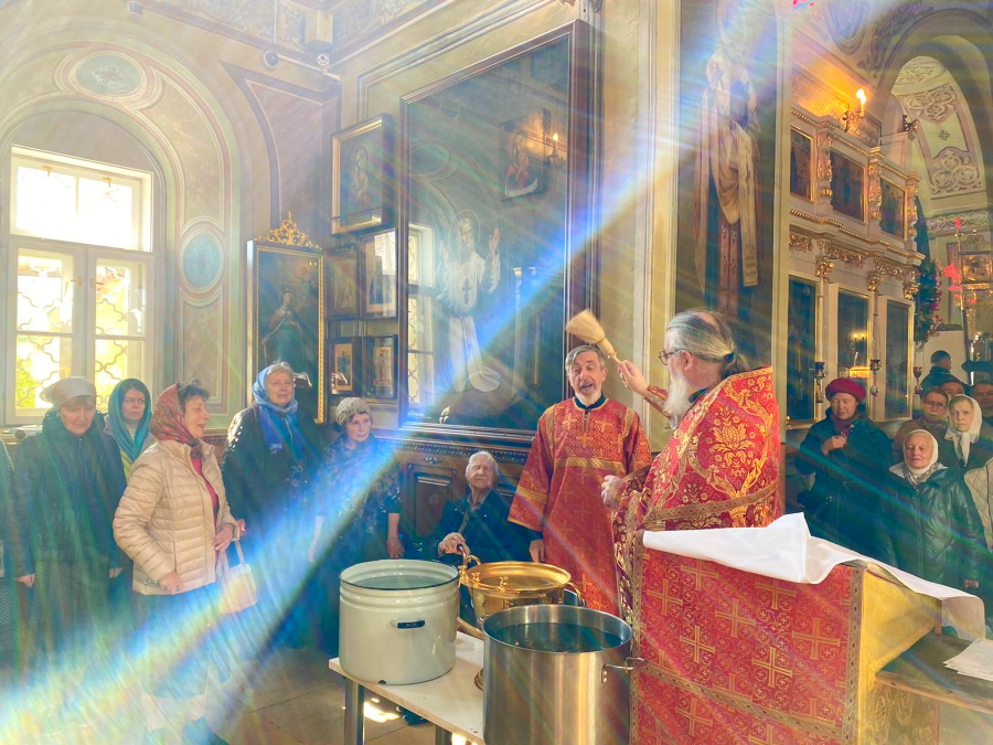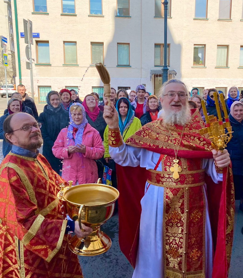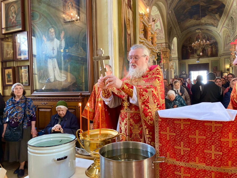 По обычаю, после литургии по пасхальному чину в пятницу совершался водосвятный молебен. Служивший в этот день протоиерей Николай Скурат окропил верующих благодатной водой сразу после ее освящения. Кропление традиционно повторилось еще четырежды во время пасхального крестного хода вокруг храма, на остановках для чтения воскресного Евангелия.