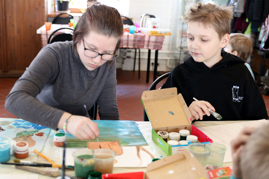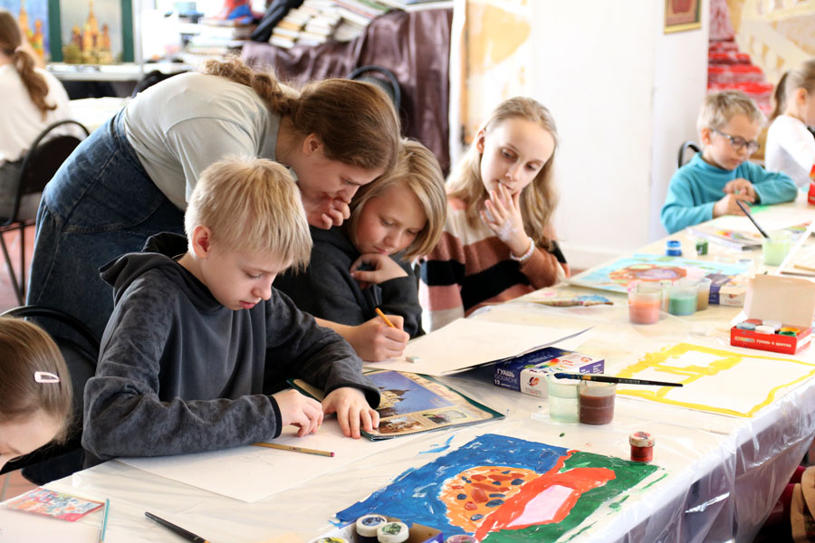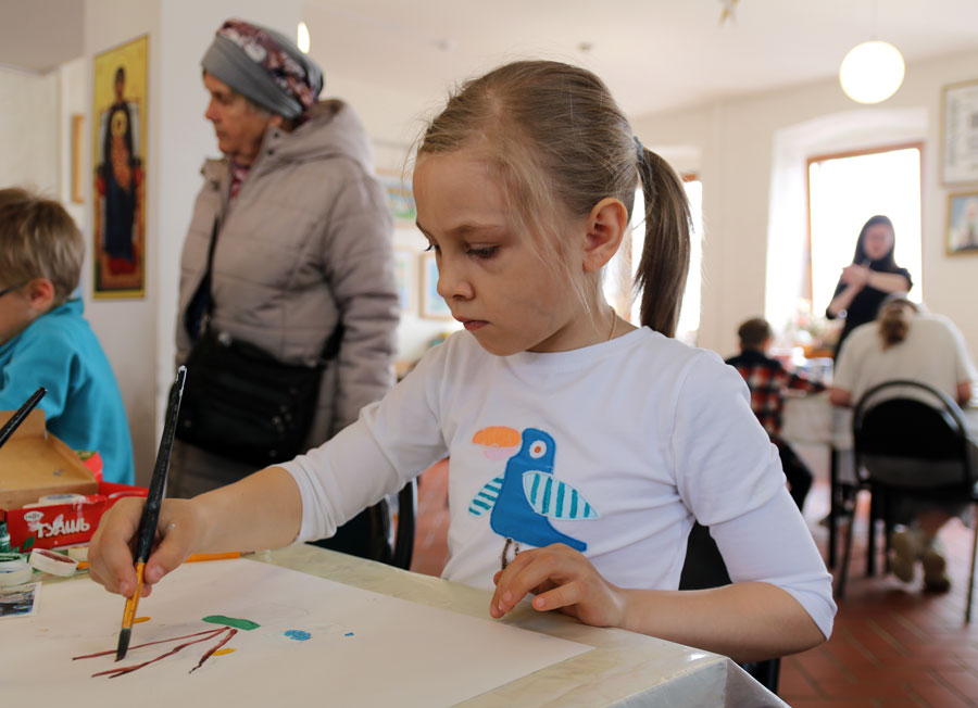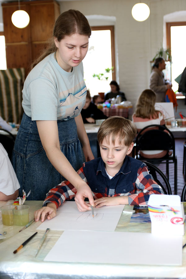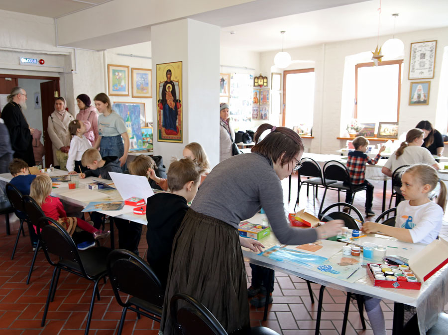 В преддверии светлого праздника Воскресения Христова для учеников воскресной школы и детей прихожан было организовано занятие по рисованию.