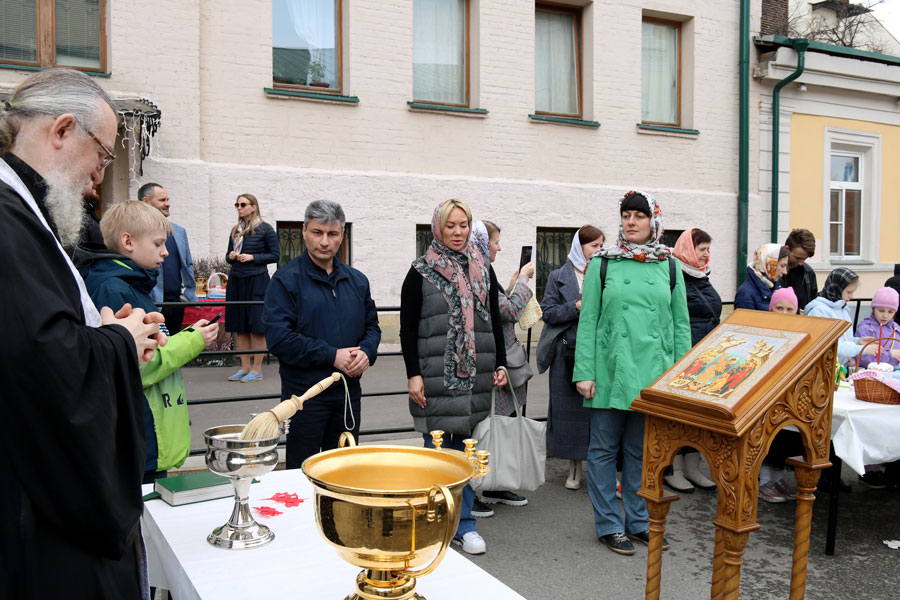 После Божественной литургии Великой Субботы дети собрались в зале воскресной школы. Урок начался совместной молитвой. Духовник воскресной школы протоиерей Николай Скурат рассказал детям о Воскресении Христовом, истории праздника и традициях, с ним связанных. Занятие с детьми провели выпускницы художественных вузов педагог воскресной школы Анна Николаевна Скурат и Ольга Владимировна Демичева, которая также закончила нашу воскресную школу для взрослых.