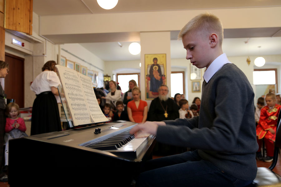 Детский хор воскресной школы под управлением А. В. Акшаевой спел тропари разным праздникам и святым. В музыкально-инструментальном отделении прозвучали пианино, скрипка, домра и флейта, были исполнены произведения Л. В. Бетховена, И. С. Баха, П. И. Чайковского, Ф. Мендельсона, К. М. Вебера, Д. Штейбельта, народные песни. Хор учащихся воскресной школы специально для праздника разучил песню про осень в музыкальном сопровождении маракасов, ложек и колокольчиков. Вместе с родителями, которые особенно помогают деятельности школы, дети исполнили инструментальный номер «Ладошки». Ребята также пели песни, рассказывали стихи.