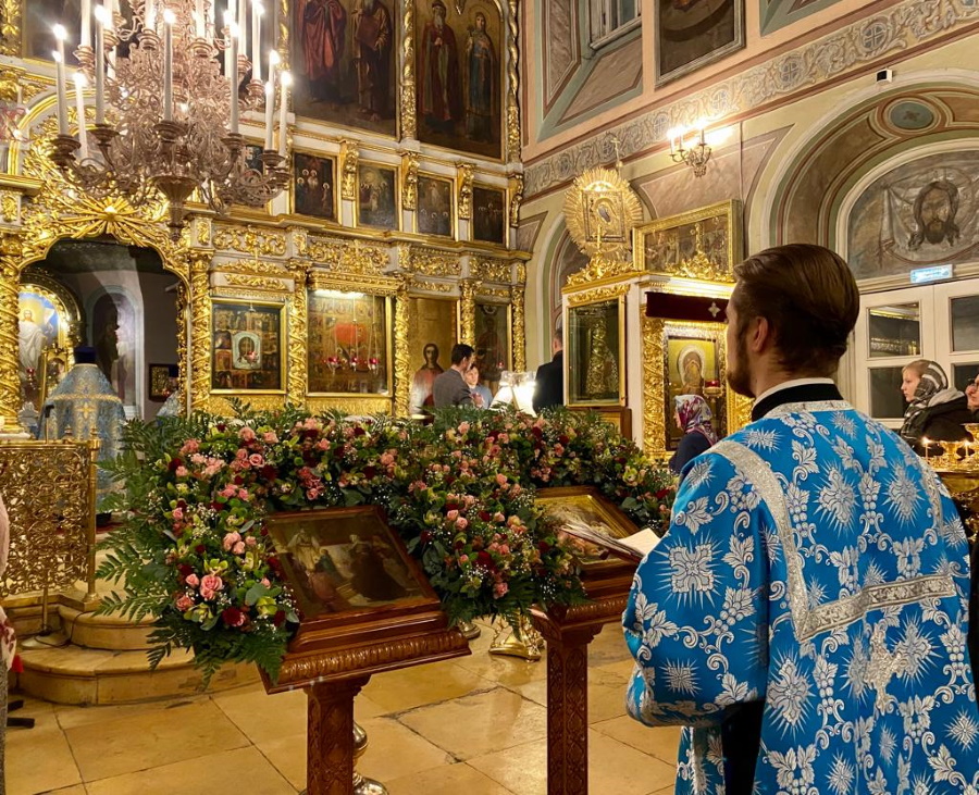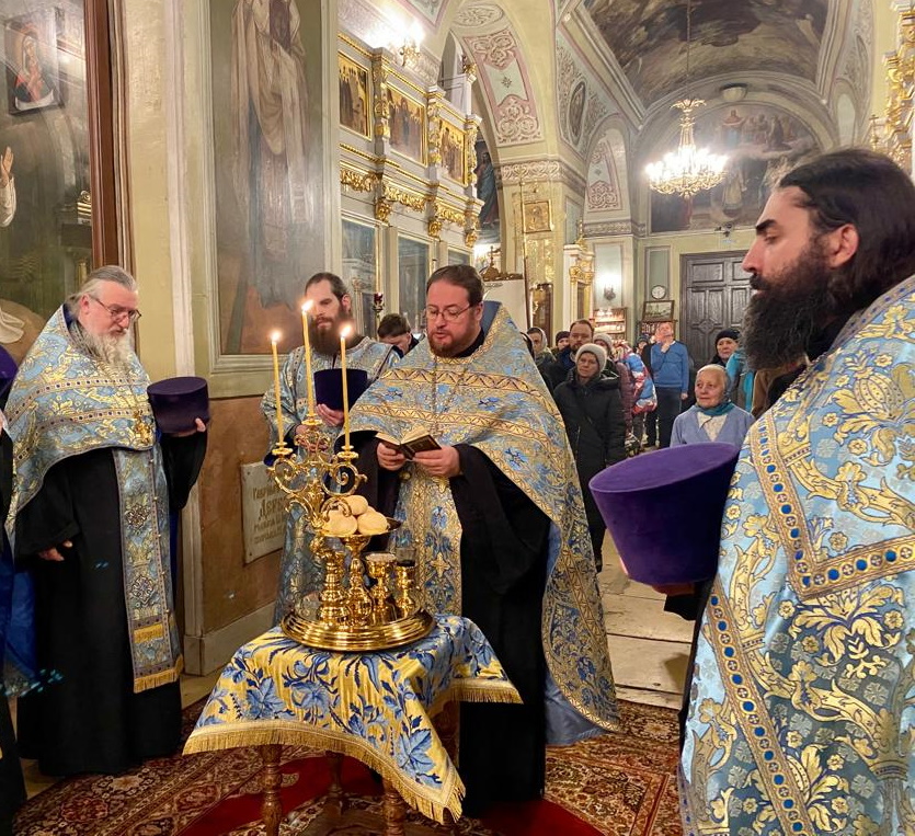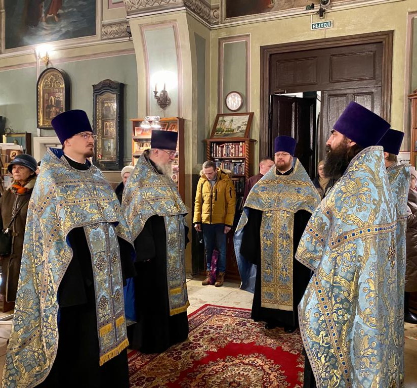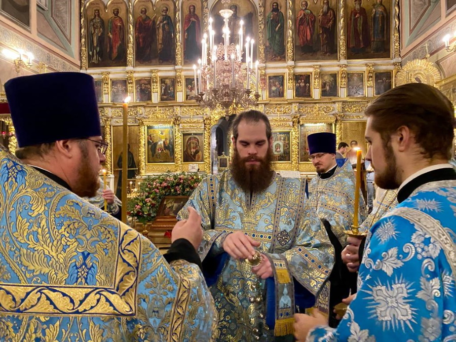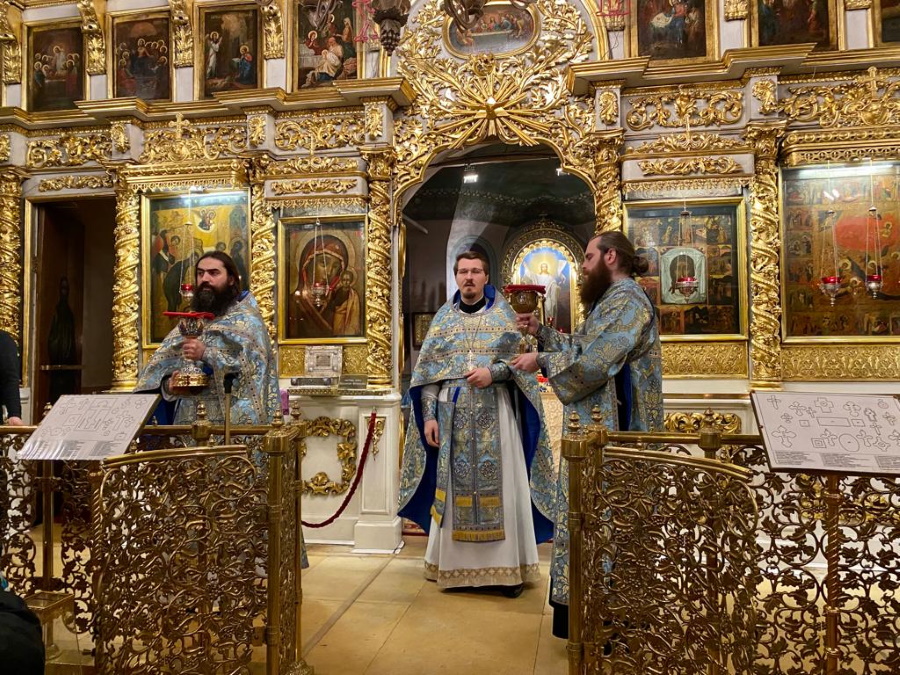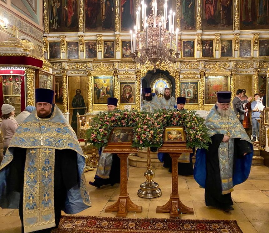 Вечером накануне праздника духовенство храма соборно отслужило торжественное всенощное бдение. Праздничное богослужение, на котором верующие величали Честнейшую Херувим и Ее вхождение в Иерусалимский храм, явилось также предвозвещением близкого Рождества Христова — в этот день впервые прозвучали радостные ирмосы «Христос раждается, славите!».