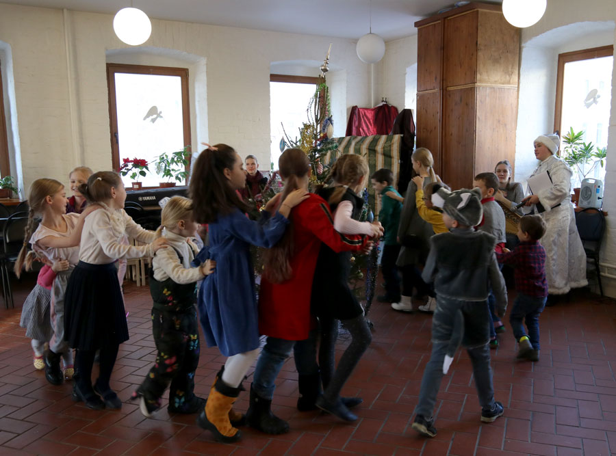 Приходская ёлка была проведена силами преподавателей, учеников и их родителей. Благодарим выпускников воскресной школы Максима и Варвару, гусляра Анастасию и семью Гуровых, принявших активное участие в организации детского праздника!