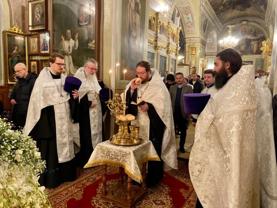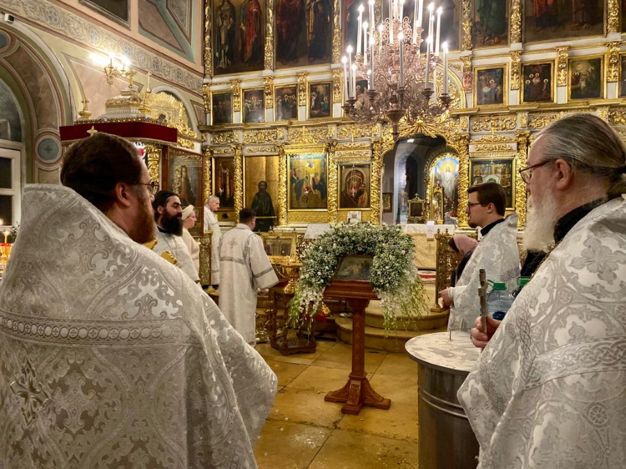 Вечером прошло торжественное всенощное бдение, состоявшее из великого повечерия с литией и утрени. В день праздника Крещения Господня были совершены две Божественные литургии. Раннюю возглавил настоятель храма протоиерей Максим Шевцов, позднюю — протоиерей Николай Скурат. Обе литургии завершились чином великого освящения воды.