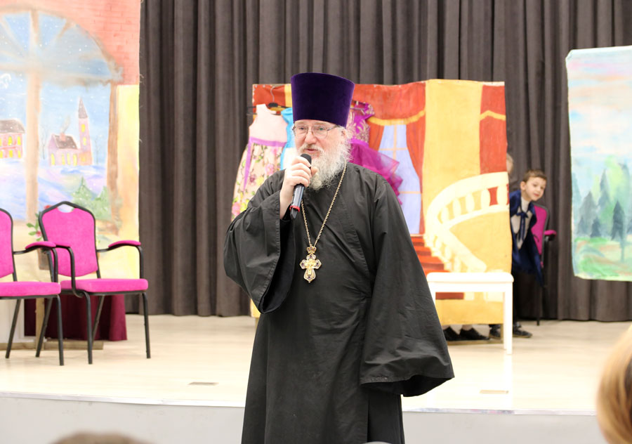 Перед началом спектакля к собравшимся обратился клирик храма пророка Божия Илии в Обыденском переулке протоиерей Николай Скурат, рассказавший о более чем двадцатилетнем сотрудничестве нашего прихода и ЦСО.