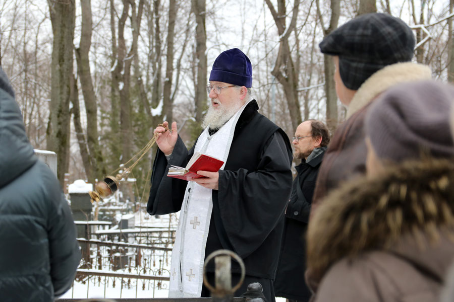 После молитвы на месте упокоения отца Александра собравшиеся не смогли традиционно посетить могилы почивших клириков и прихожан нашего храма и пропели им «вечную память» у могилы отца Александра – в связи с заснеженностью кладбища к большинству чтимых могил доступа не было. К месту погребения нашего батюшки по глубокому снегу была протоптана тропа.