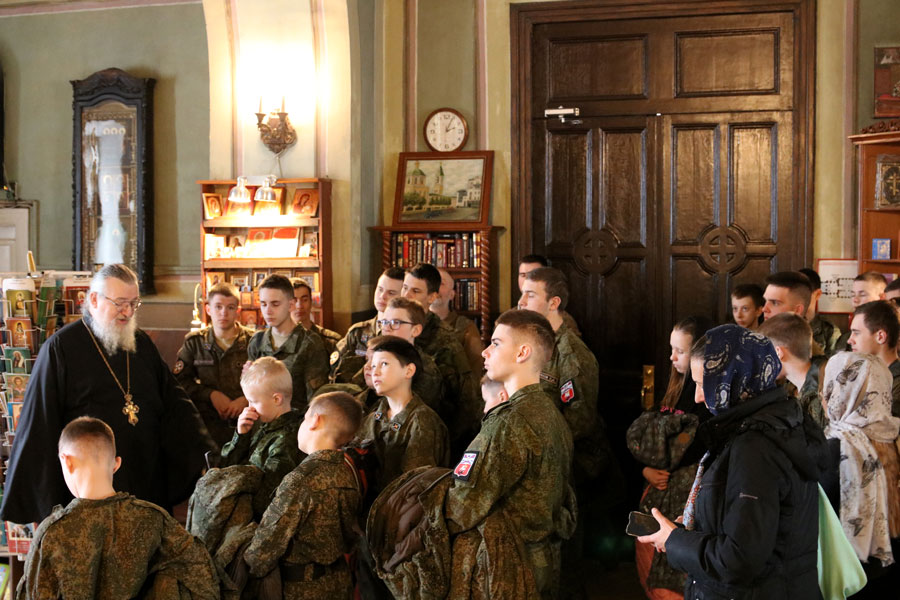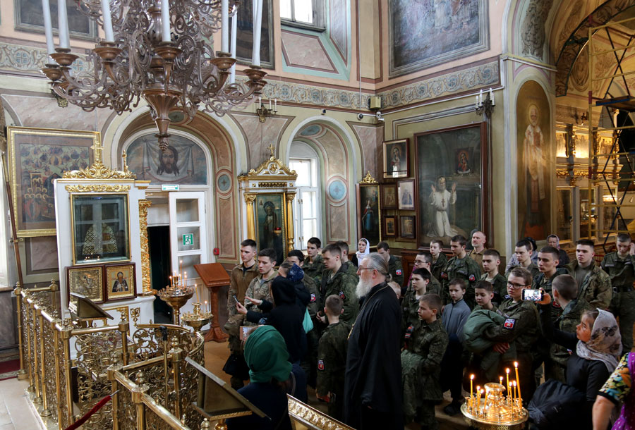 Кадеты познакомились с историей нашего храма, его святынями, узнали о чудесах, которые совершал пророк Божий Илия, и о священномученике Серафиме (Чичагове), который будучи военным, по благословению святого праведного Иоанна Кронштадтского принял священный сан и стал мучеником за Христа. Ребята спели тропарь, кондак и величание святому пророку Божию Илии, приложились к чудотворной иконе Божией Матери «Нечаянная Радость» и другим святыням.