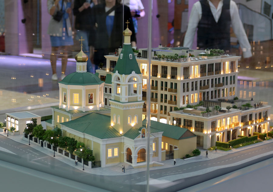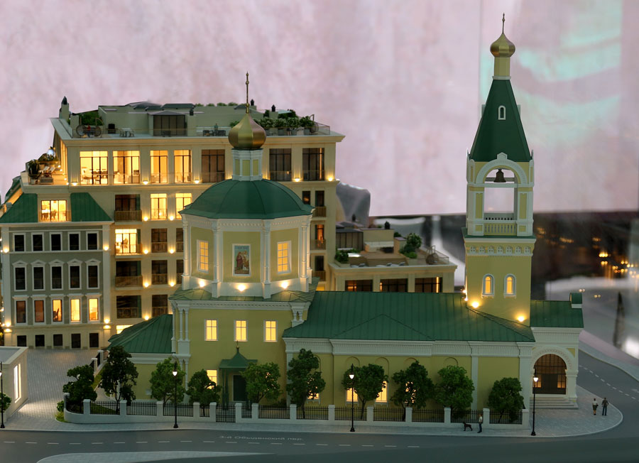 Еще более печальным видится на макете проекта этого клубного дома использование церковной земли вокруг подпорной стены храма не для церковных нужд, что не согласовано с настоятелем и священноначалием.