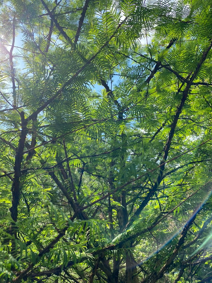 Затем мы переместились в дендрарий. Это огромная выставка древесных и кустарниковых растений. Там мы познакомились с несколькими видами клёнов, тополей, каштанов, с родственником самого высокого дерева в мире — секвойи и с хищной лианой.