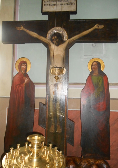 Наверное, когда кто-нибудь из наших прихожан хочет обратиться с молитвой к святому Иоанну Богослову, то он идет к Распятию в правом приделе, где у Креста Господу предстоят Его Пречистая Матерь и Апостол любви.
