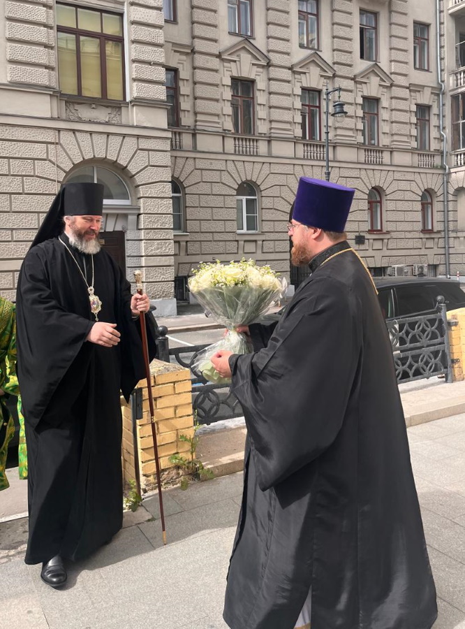 По окончании богослужения Его Преосвященство поздравил администрацию, профессорско-преподавательский состав, учащихся лингвистического университета, настоятеля храма Святой равноапостольной Марии Магдалины, священнослужителей и всех присутствовавших с праздником Святой Пятидесятницы, отметив, что благодаря событию Сошествия Духа Святаго апостолы «получили особый благодатный дар возвещать и проповедовать Слово Божие на разных языках, на разных наречиях с тем, чтобы сделать свидетельство о Евангелии Христовом доступным всем жителям земли». Владыка подчеркнул, что, как и в апостольские времена, так и в сегодняшнем служении Церкви огромное значение имеет знание иностранных языков, которое не просто помогает миссионерам в их трудах, но является обязательным условием для успешного проповедования Евангелия Христова.