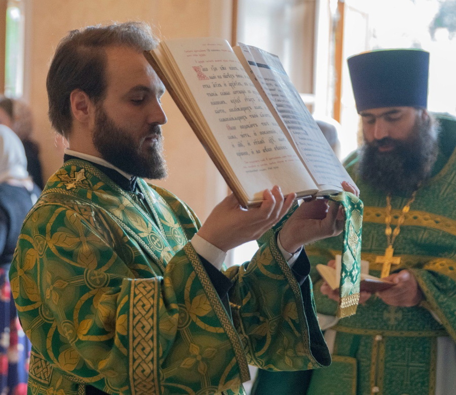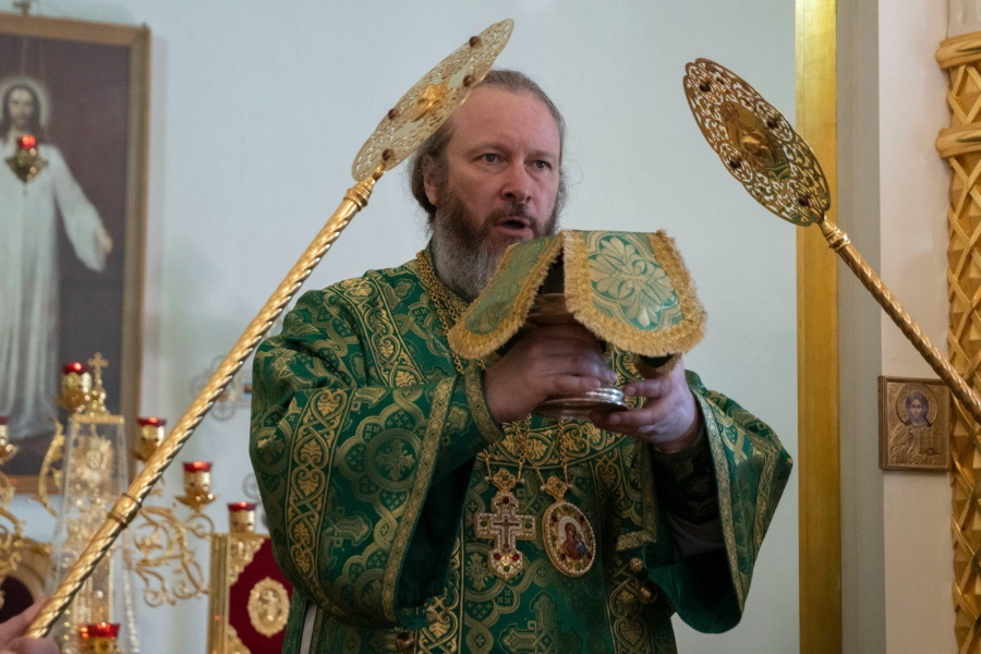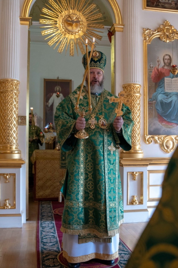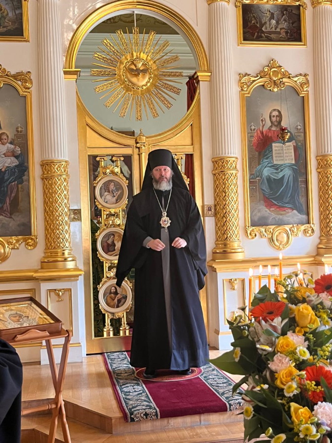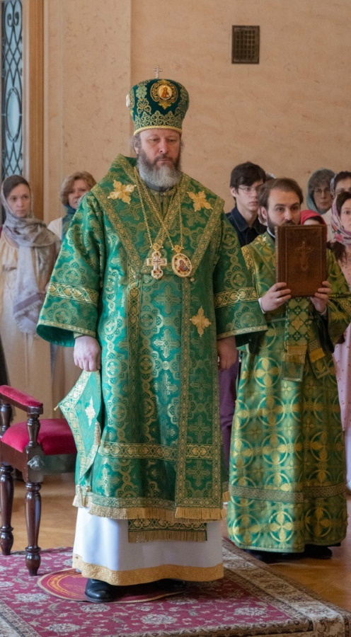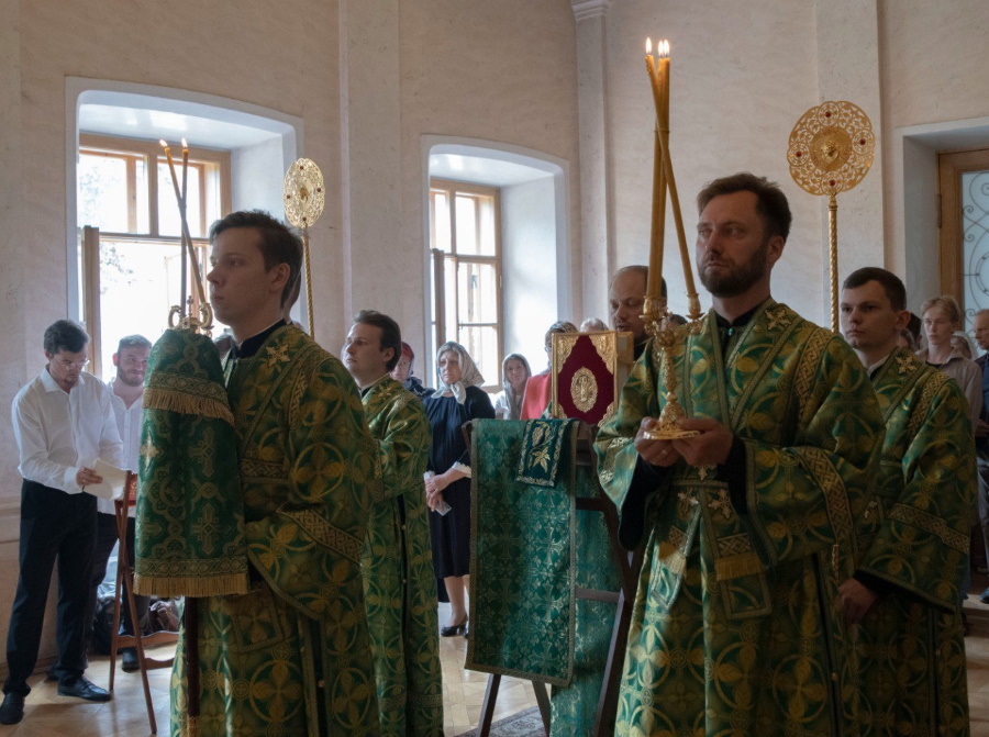 Во время литургии были произнесены особые молитвы о начальствующих, учащих и учащихся МГЛУ. После Божественной литургии владыка Евфимий совершил литию по невинно убиенным в День Святой Троицы в Севастополе и Дагестане 23 июня.