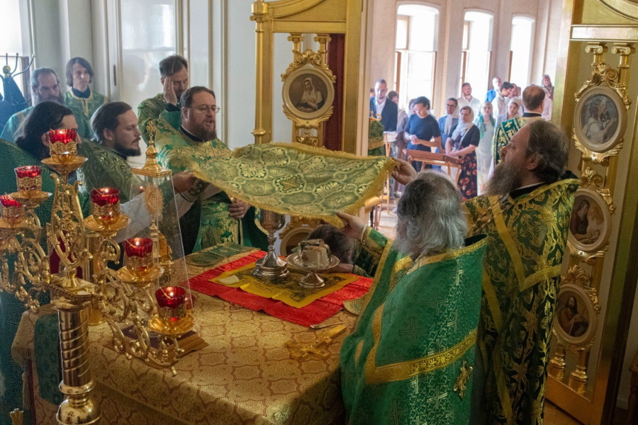 В домовом храме равноапостольной Марии Магдалины была совершена Божественная литургия на иностранных языках.