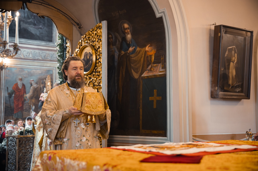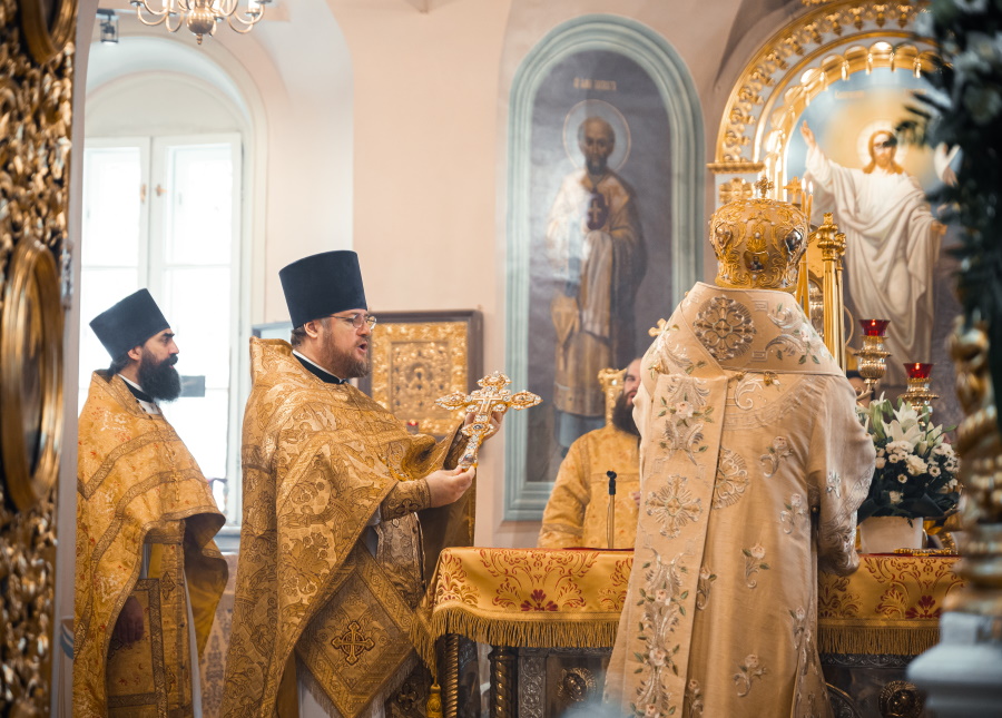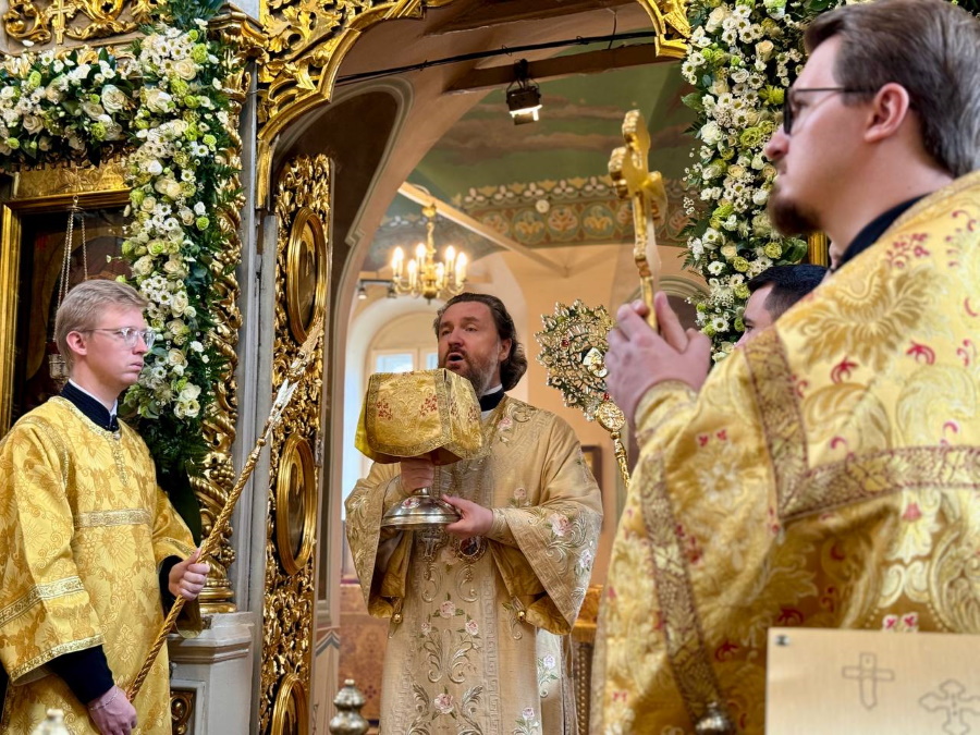 Его Высокопреосвященству сослужили протопресвитер Владимир Диваков, секретарь Святейшего Патриарха по г. Москве, благочинный Центрального округа, настоятель храма пророка Божия Илии в Обыденском переулке протоиерей Максим Шевцов и духовенство храма. Диаконский чин возглавил протодиакон Николай Филатов.