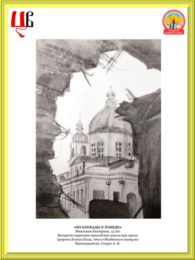 В номинации «Основная тематика» в возрастной группе 9–12 лет художественная работа Семенихиной Анастасии «Парад 1941 года» заняла первое место, художественная работа Гуровой Ульяны «Сестра милосердия» — третье место; в возрастной группе 13–17 лет художественная работа Мияльной Екатерины «Из блокады к Победе» заняла первое место, художественная работа Курноскиной Ольги «Родина мать зовёт» — второе место.