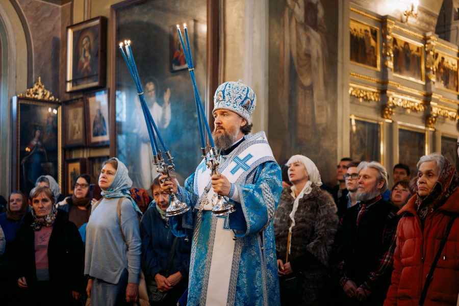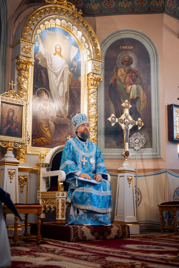 На сугубой ектении были вознесены особые прошения, Высокопреосвященнейший владыка прочитал молитву о Святой Руси.