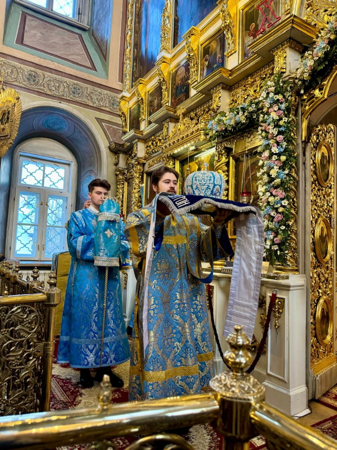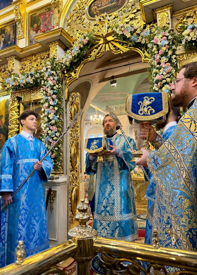 Радостно и торжественно было и на совершенных в день праздника двух Божественных литургиях. Особой молитвенной атмосферой и благолепием, которые всегда присущи архиерейским богослужениям, была отмечена поздняя Божественная литургия. По благословению Святейшего Патриарха Московского и всея Руси Кирилла ее возглавил Высокопреосвященнейший Григорий, митрополит Воскресенский, первый викарий Святейшего Патриарха, управляющий делами Московской Патриархии.